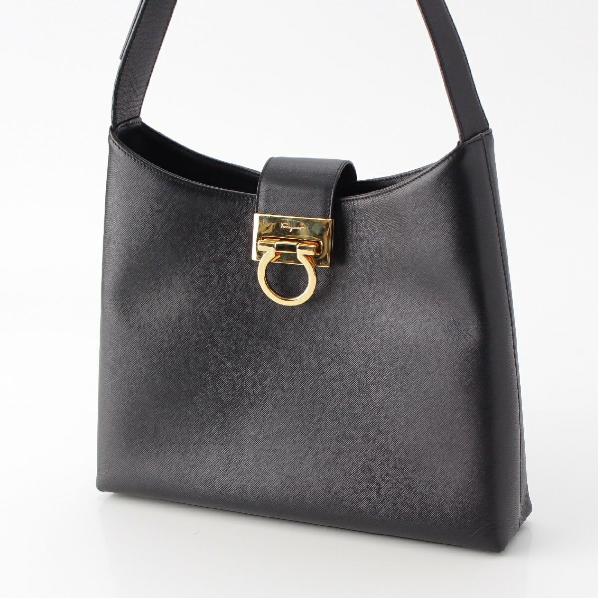 サルヴァトーレフェラガモ レザー ガンチーニ ゴールド金具 ワン ショルダーバッグ ブラック