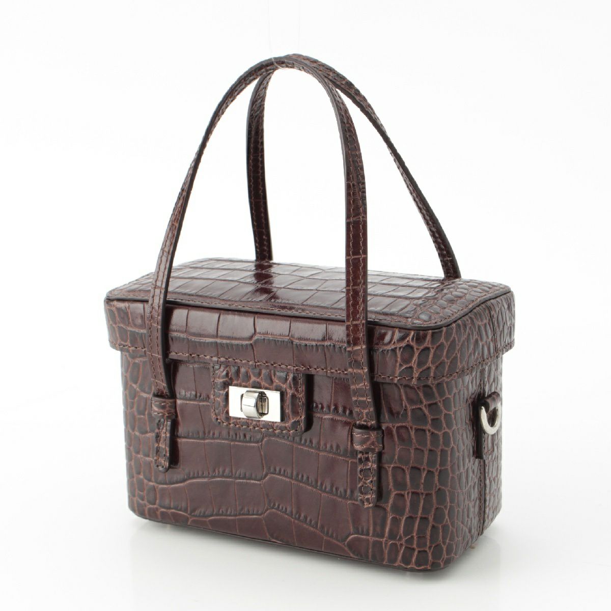 フォクシー レザー ジュエルボックス バニティバッグ 2WAYミニバッグ ショルダーバッグ ターンロック ブラウン
