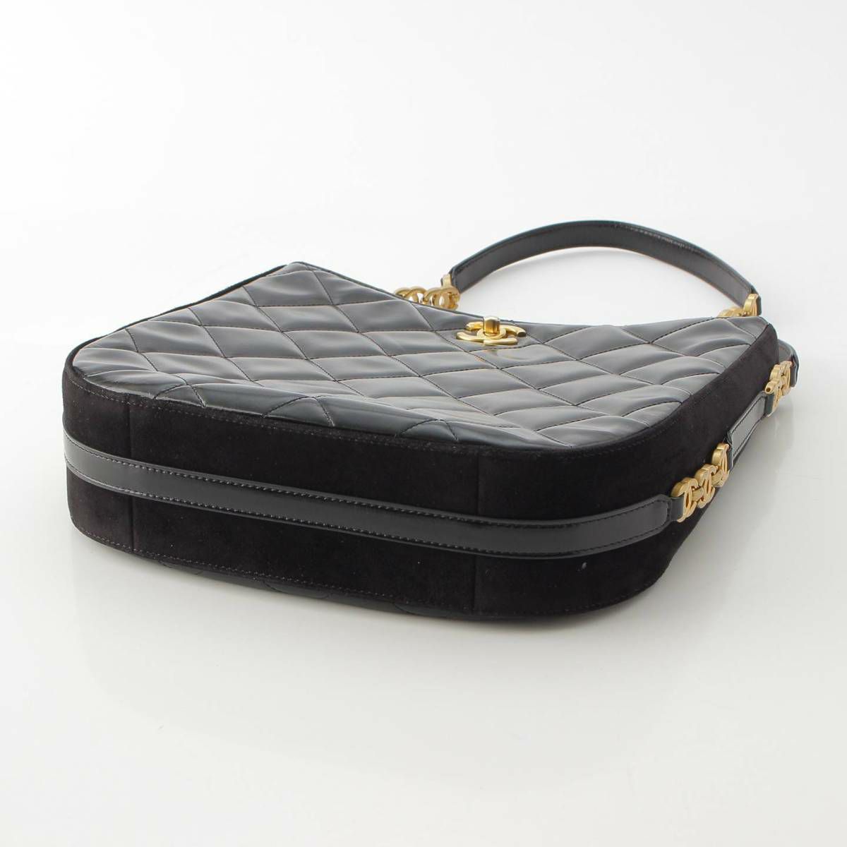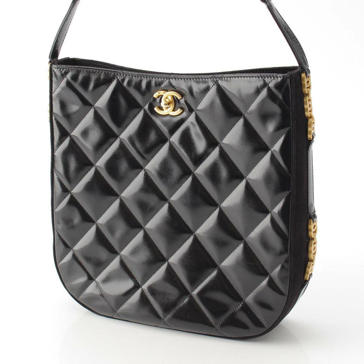 シャネル 2022 シャイニーカーフスキン ワンショルダーバッグ ホーボーバッグ ブラック