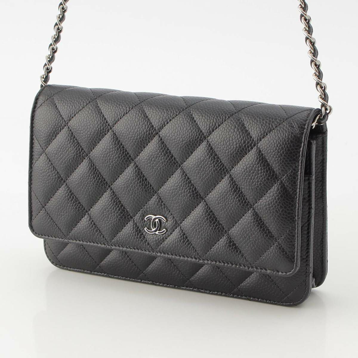 シャネル マトラッセ キャビアスキン チェーンウォレット ショルダー RFID SV金具 AP0250 ブラック