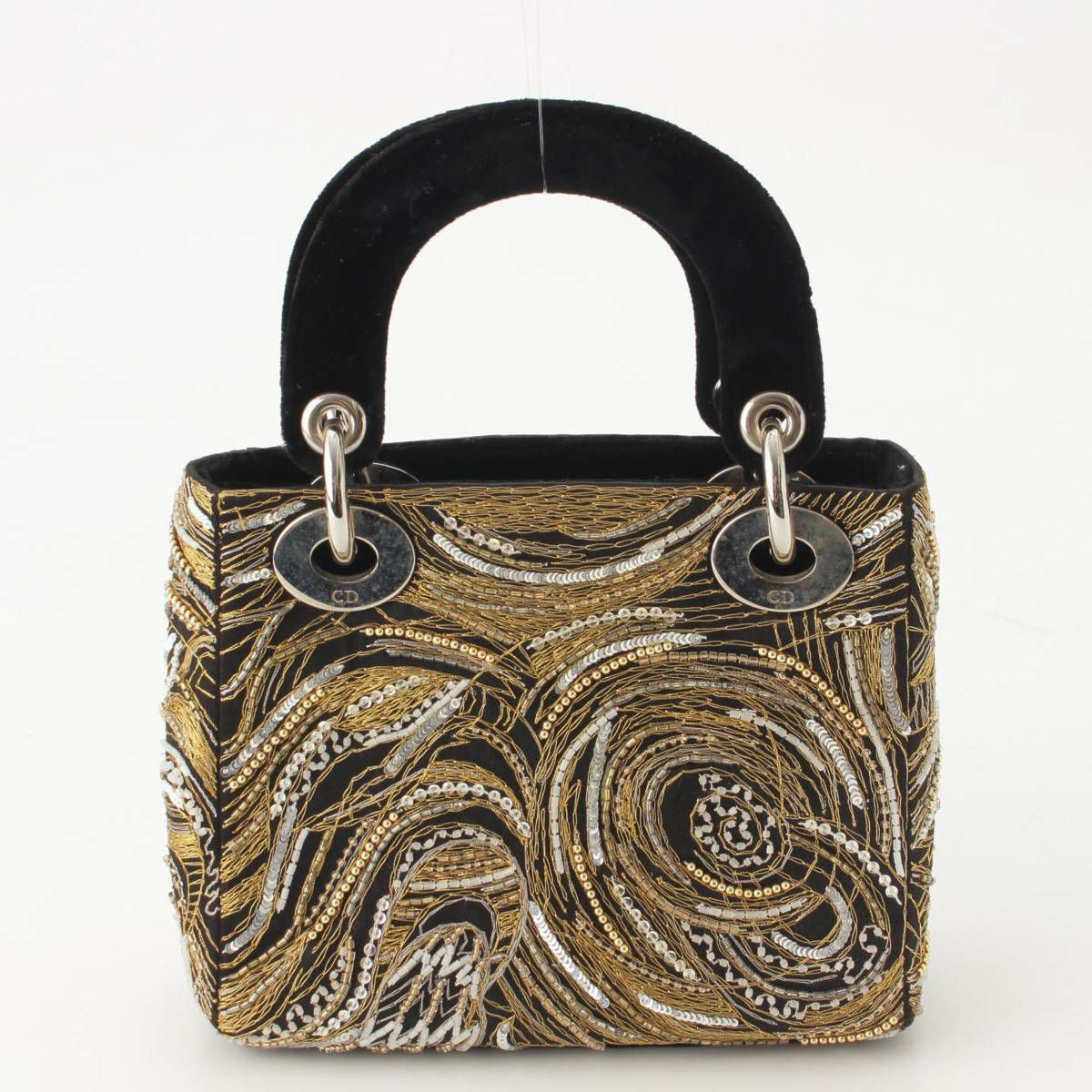 底部や持ち手のスエード地に擦れ、チャームにくすみ汚れあり
