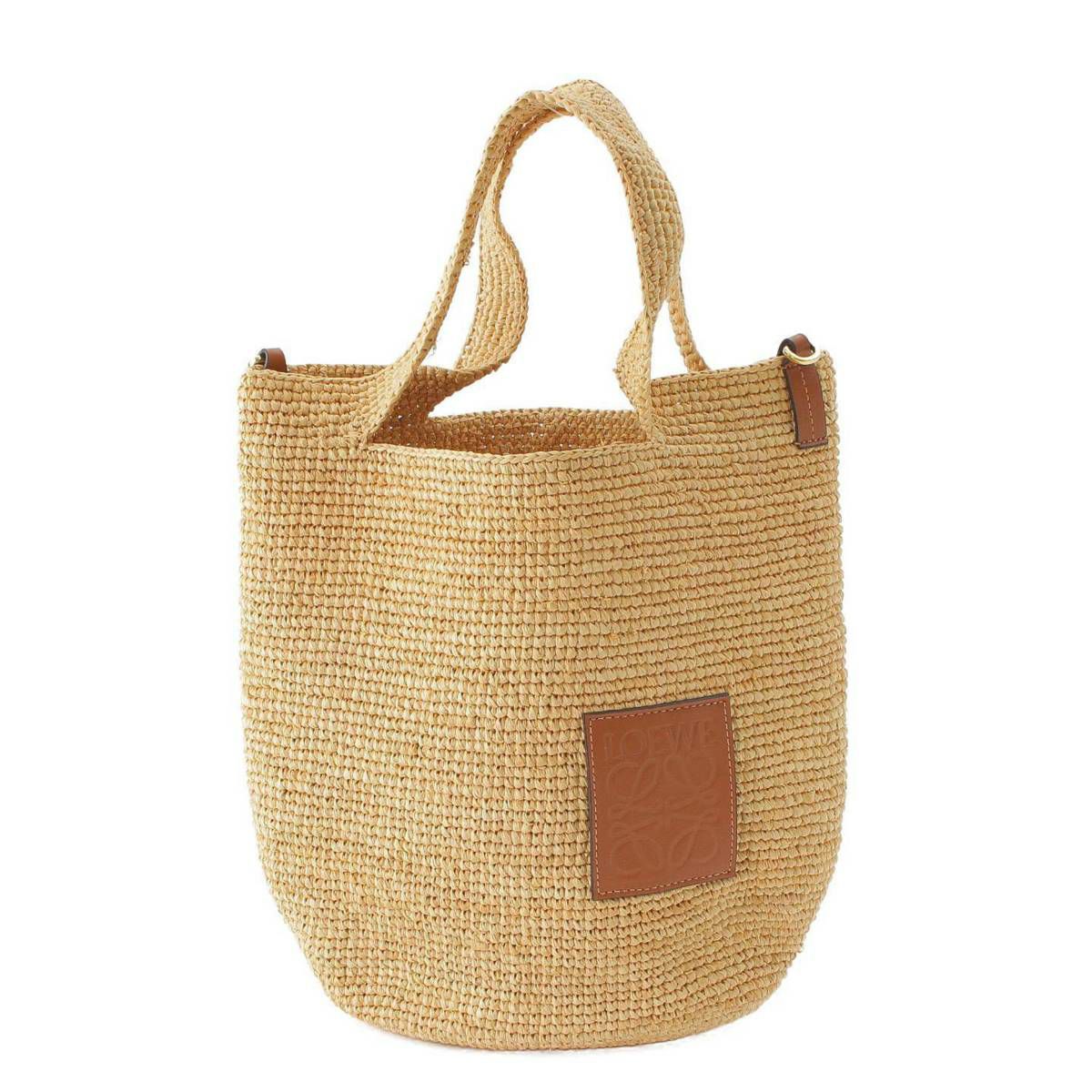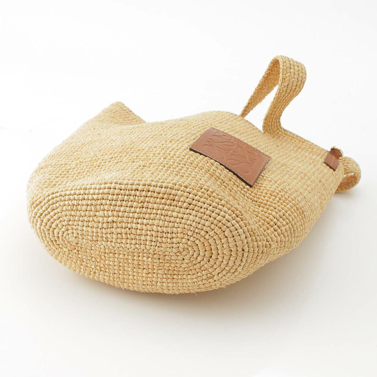 ロエベ Loewe スリット アナグラム レザー ラフィア 2WAY ショルダーバッグ ハンドバッグ ベージュ