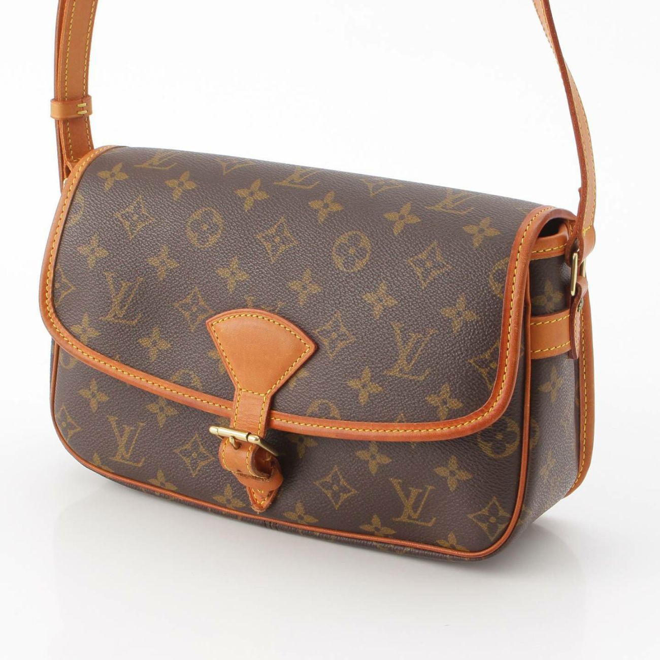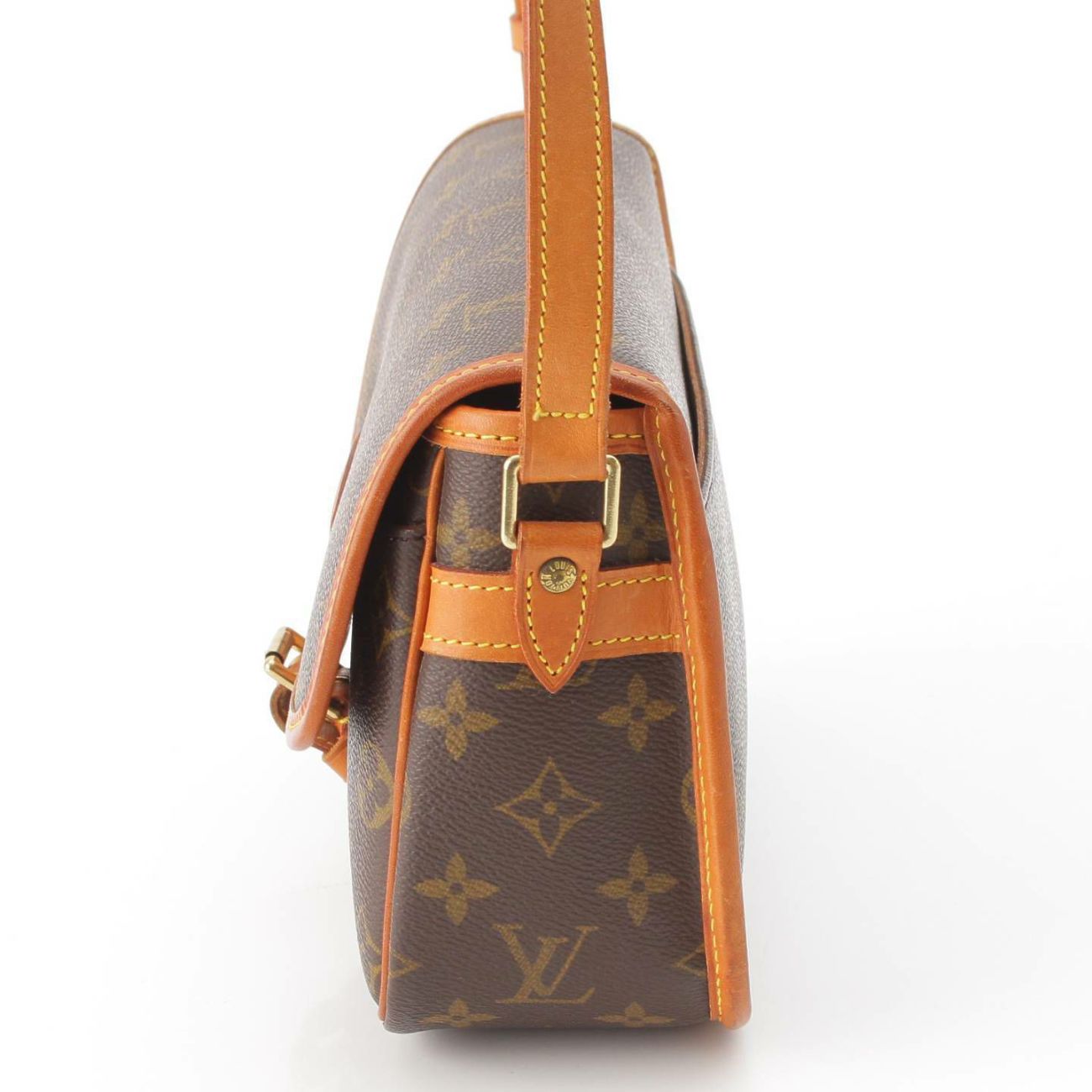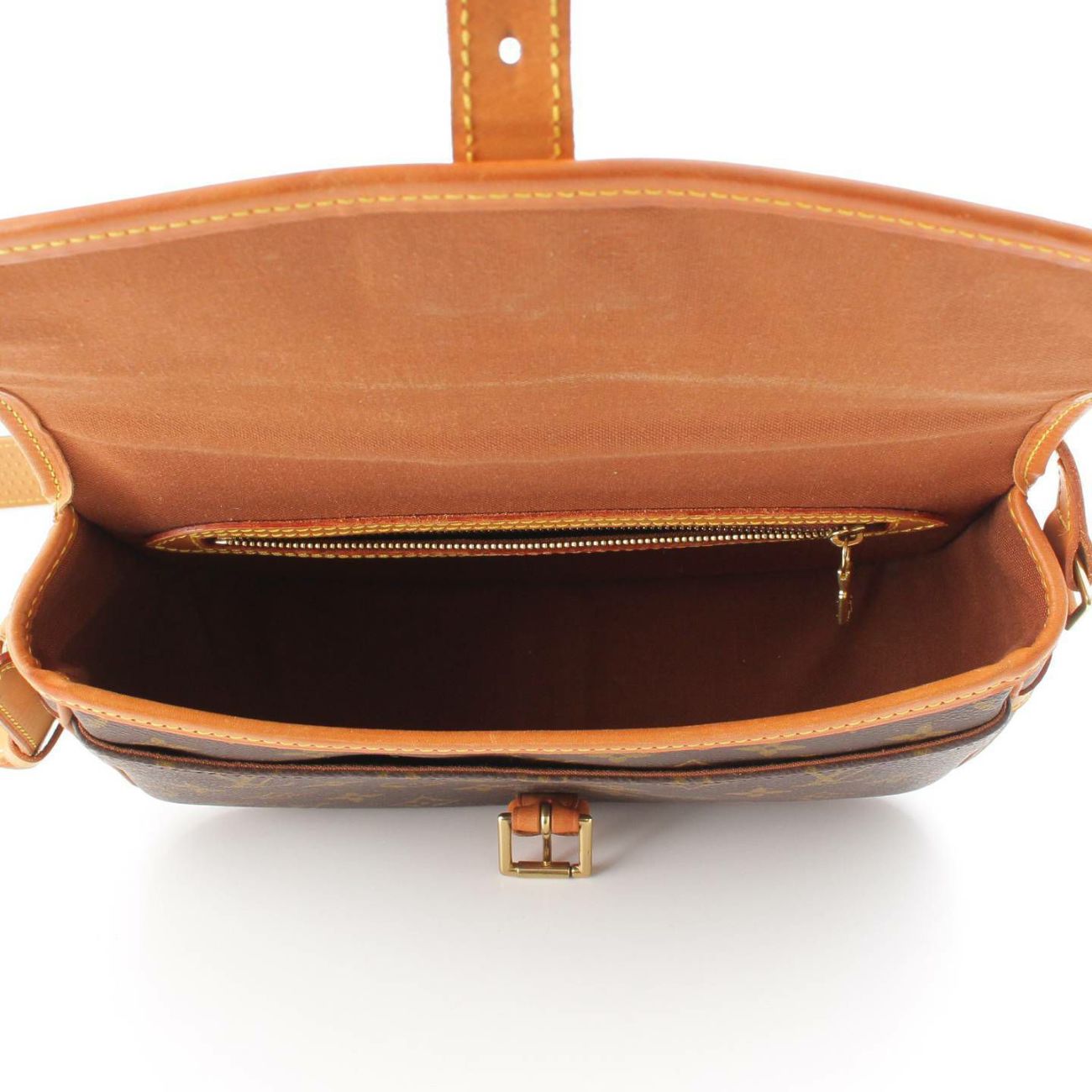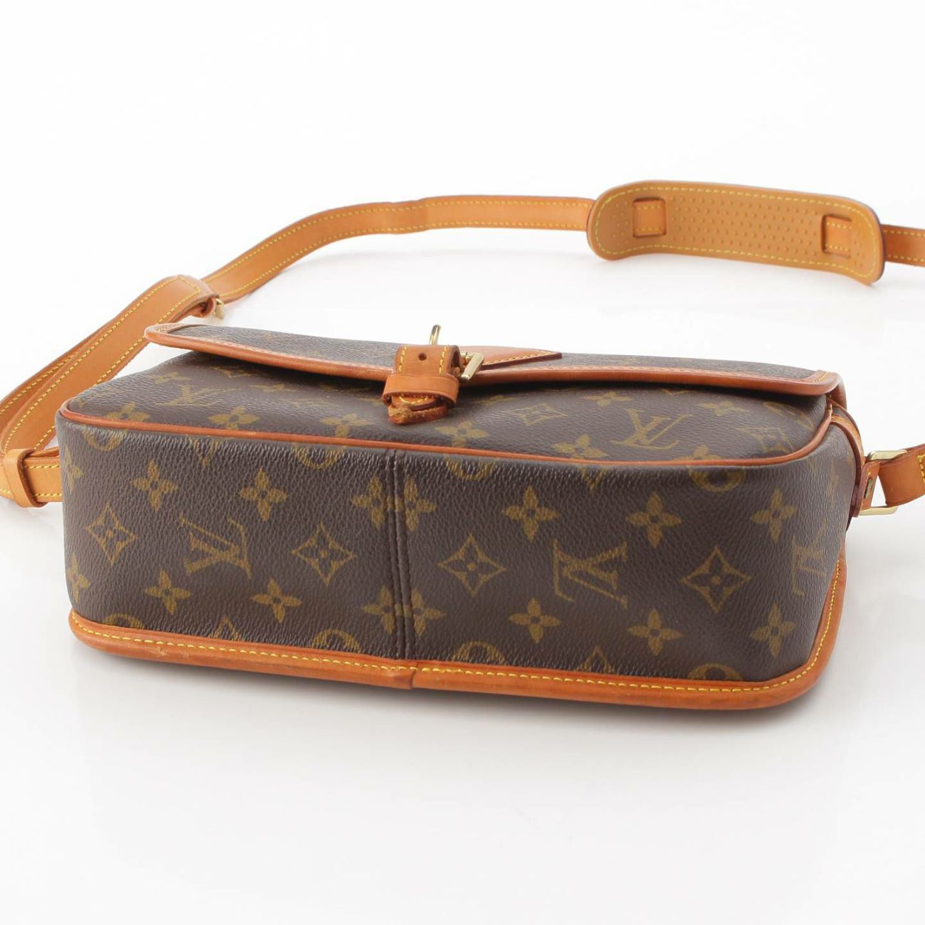 ベルトレザーに擦れや黒ずみ、フラップ裏に擦れや汚れあり