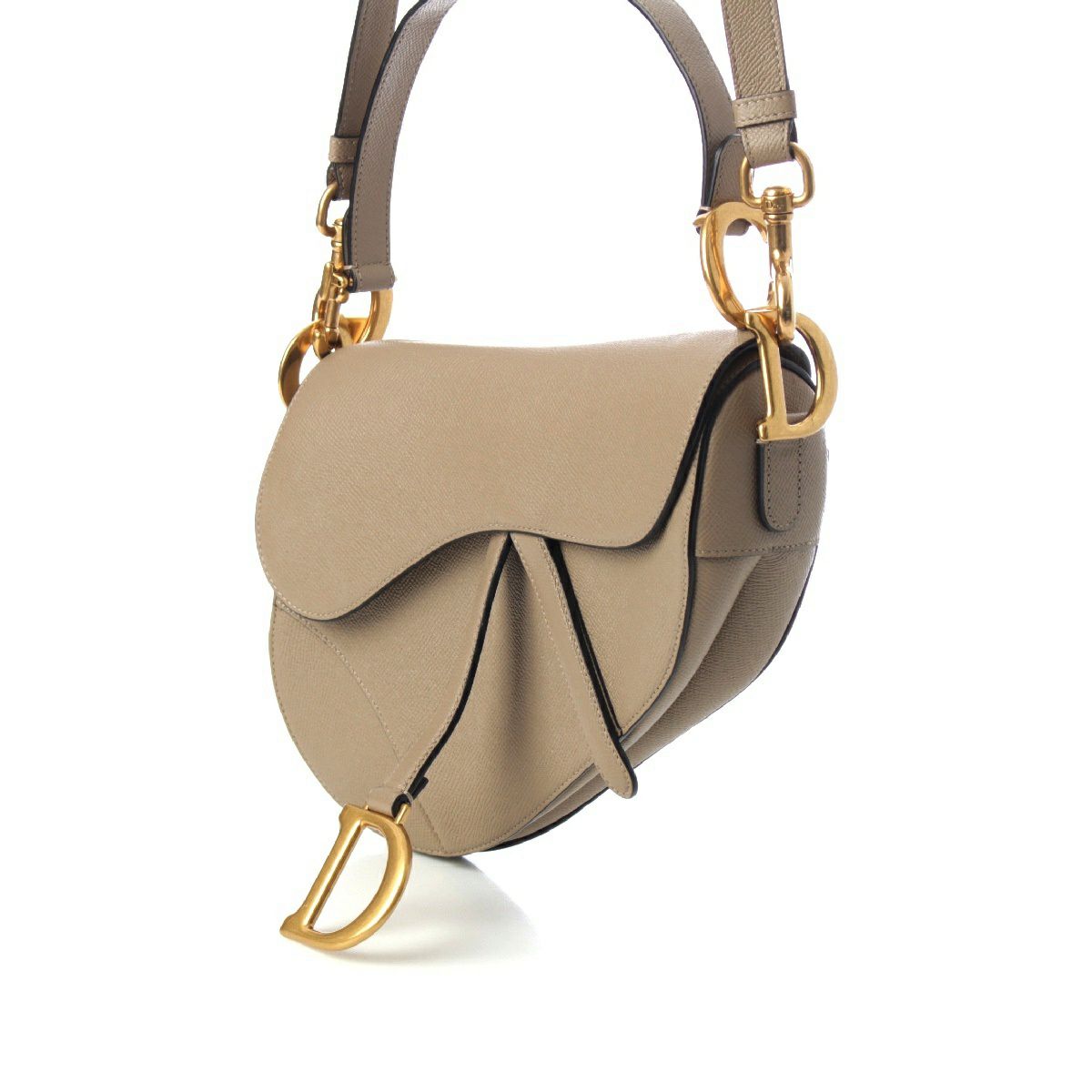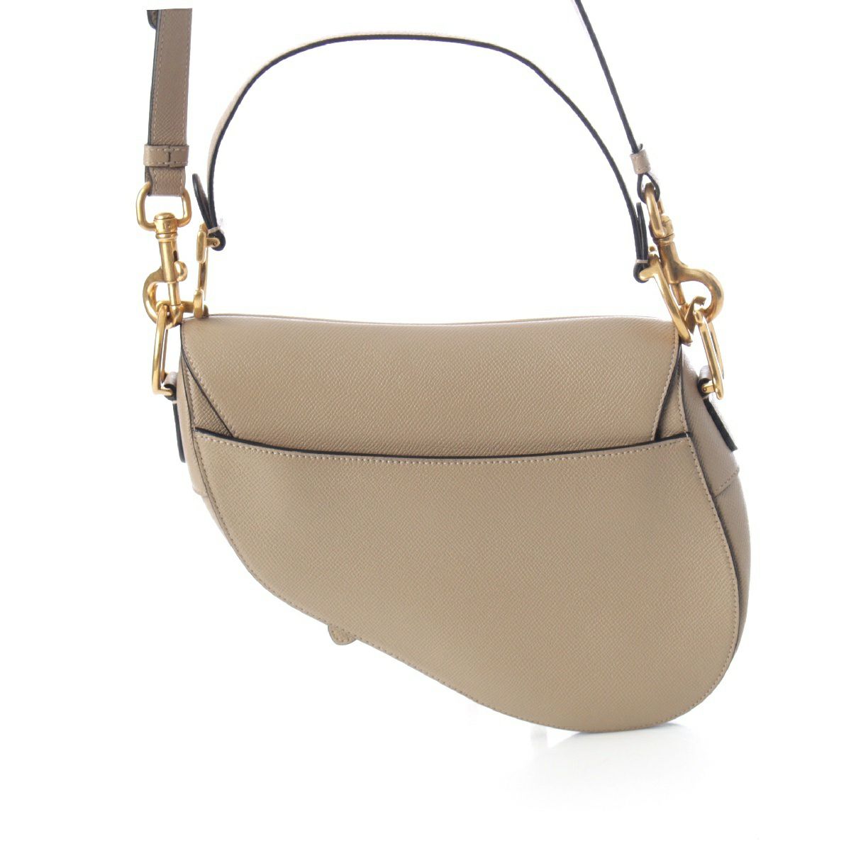 ディオール グレインドカーフスキン サドル Dチャーム ワンショルダー 2way バッグ ベージュ ゴールド金具