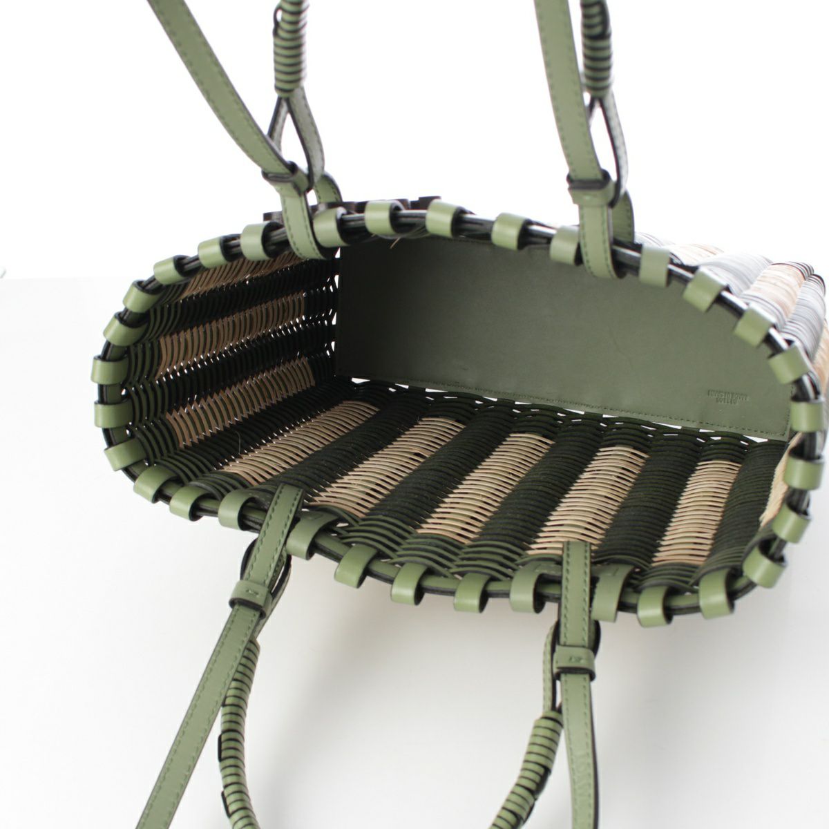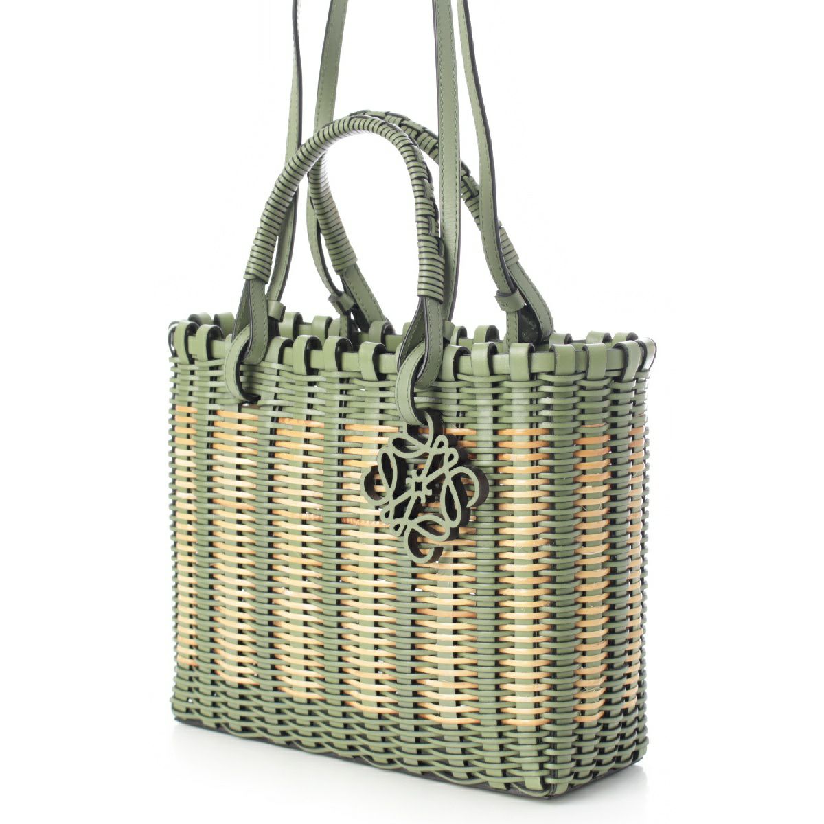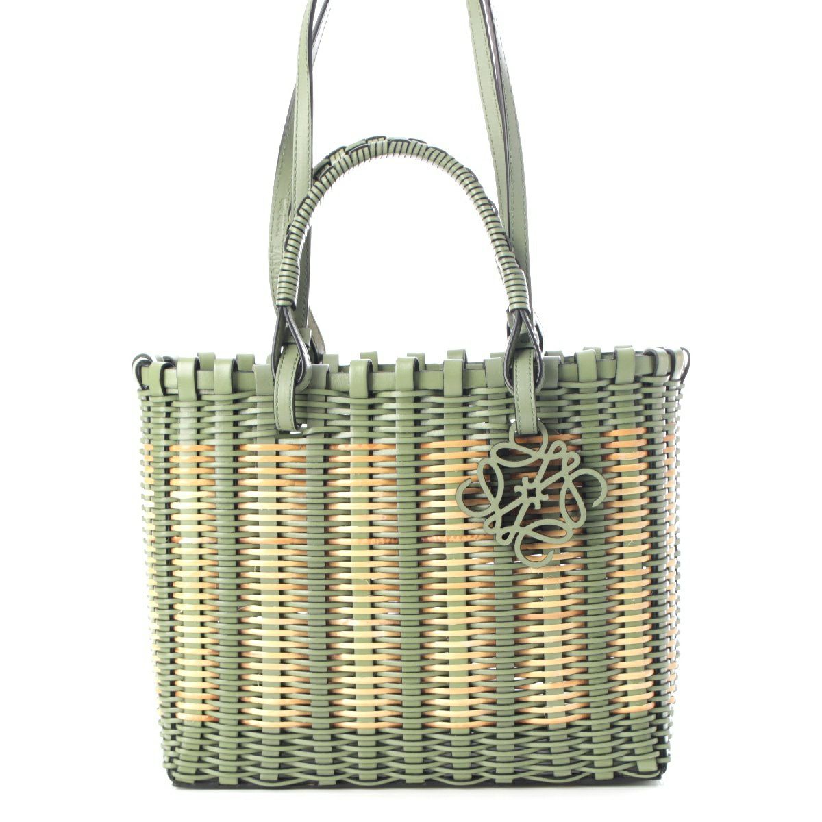 ロエベ ラタン カーフレザー アナグラム ダブルハンドル スクエア トートバッグ 2way ショルダー ハンドバッグ A657P28X01 ローズマリー グリーン ベージュ