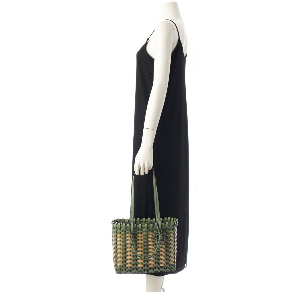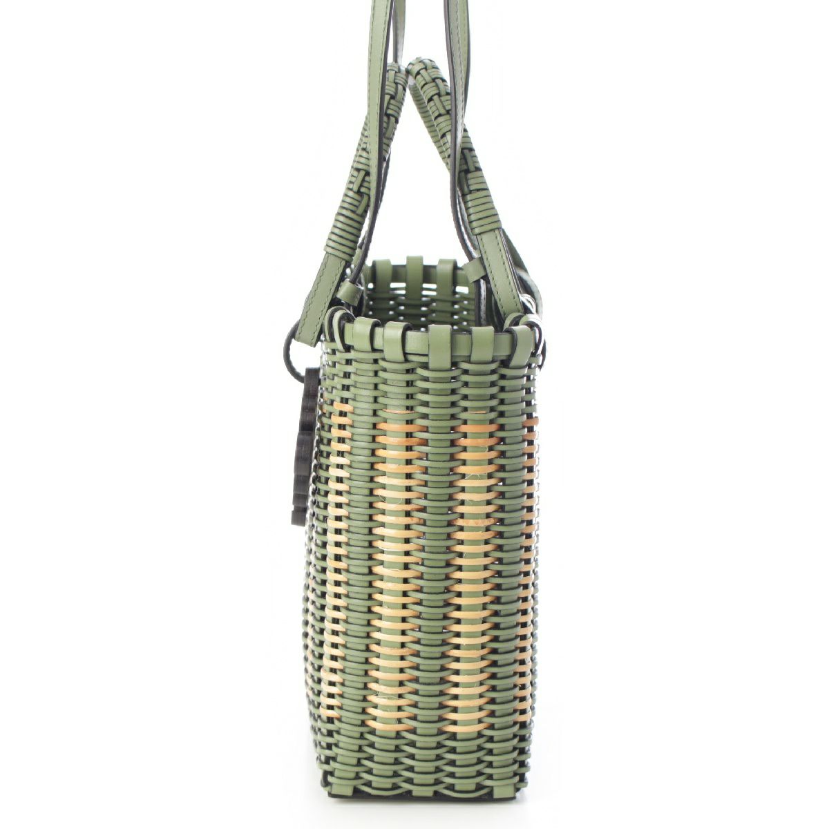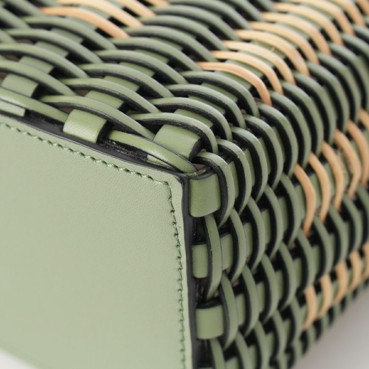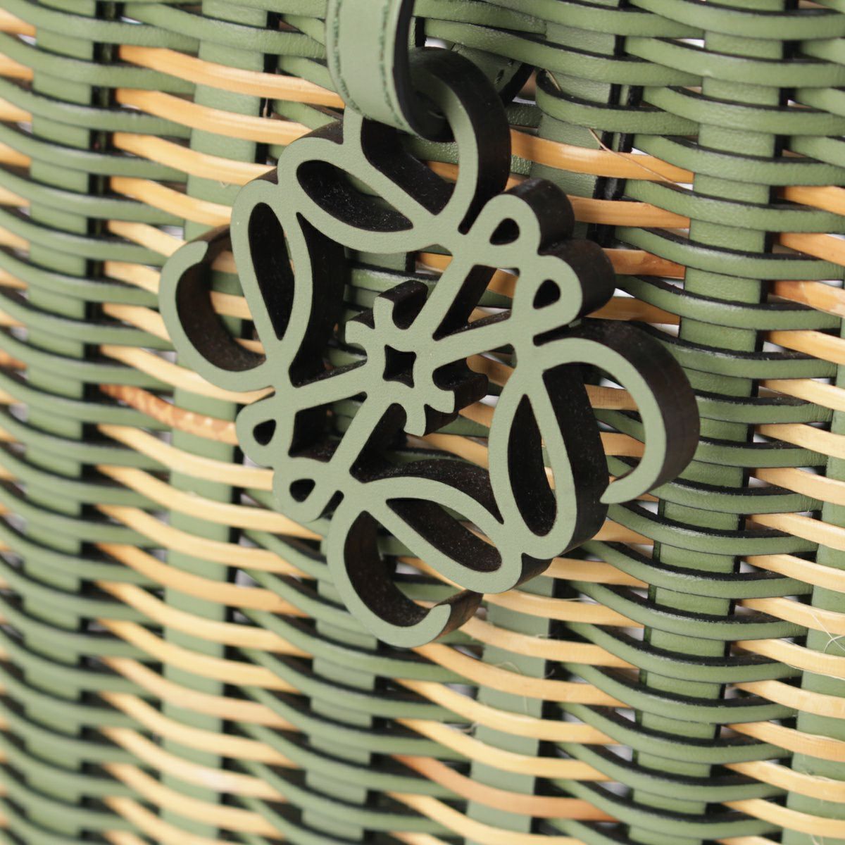 ロエベ ラタン カーフレザー アナグラム ダブルハンドル スクエア トートバッグ 2way ショルダー ハンドバッグ A657P28X01 ローズマリー グリーン ベージュ