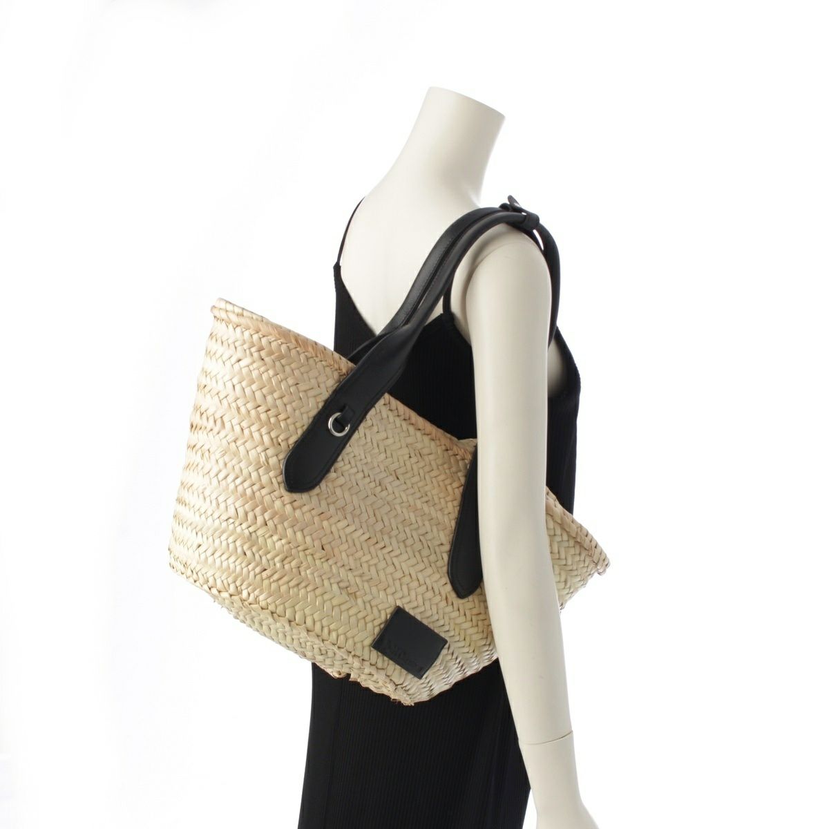 ジェイアンドエムデヴィッドソン ラフィア レザー ハンド トートバッグ ベージュ ブラック