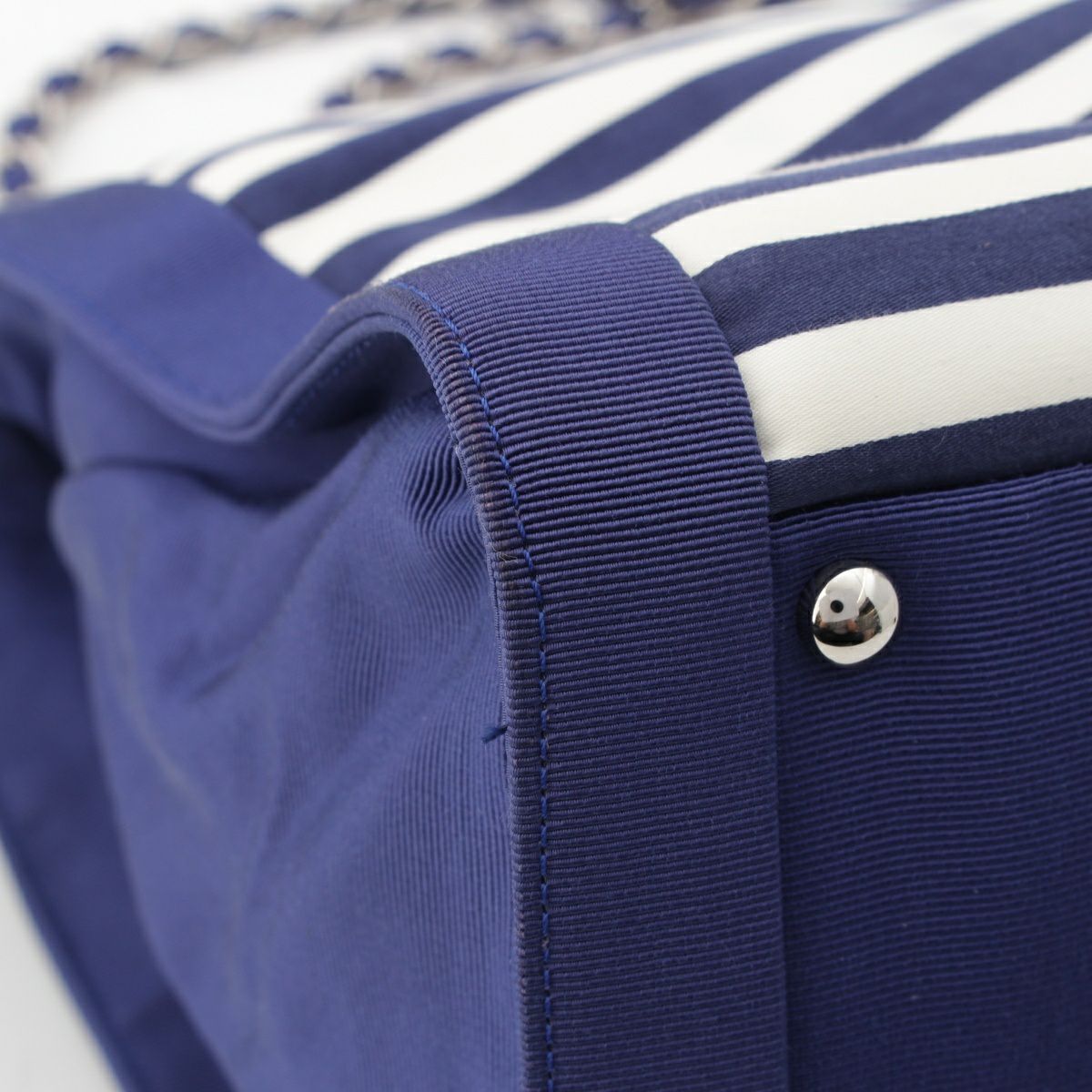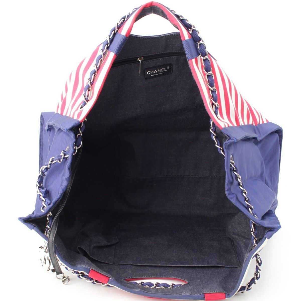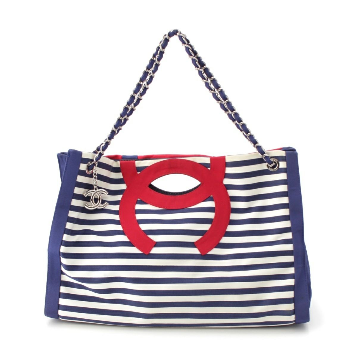 シャネル クルーズライン 13番台 ココマーク ボーダー チェーン トートバッグ ブルー×レッド×ホワイト