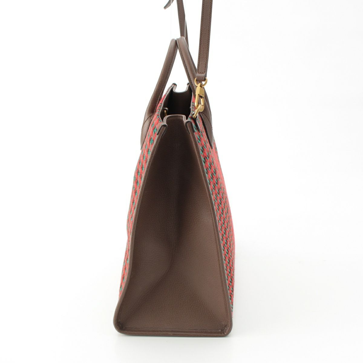 グッチ ウール レザー インターロッキングG ハウンドトゥース 2WAY ショルダー トートバッグ 644994 レッド ブラウン
