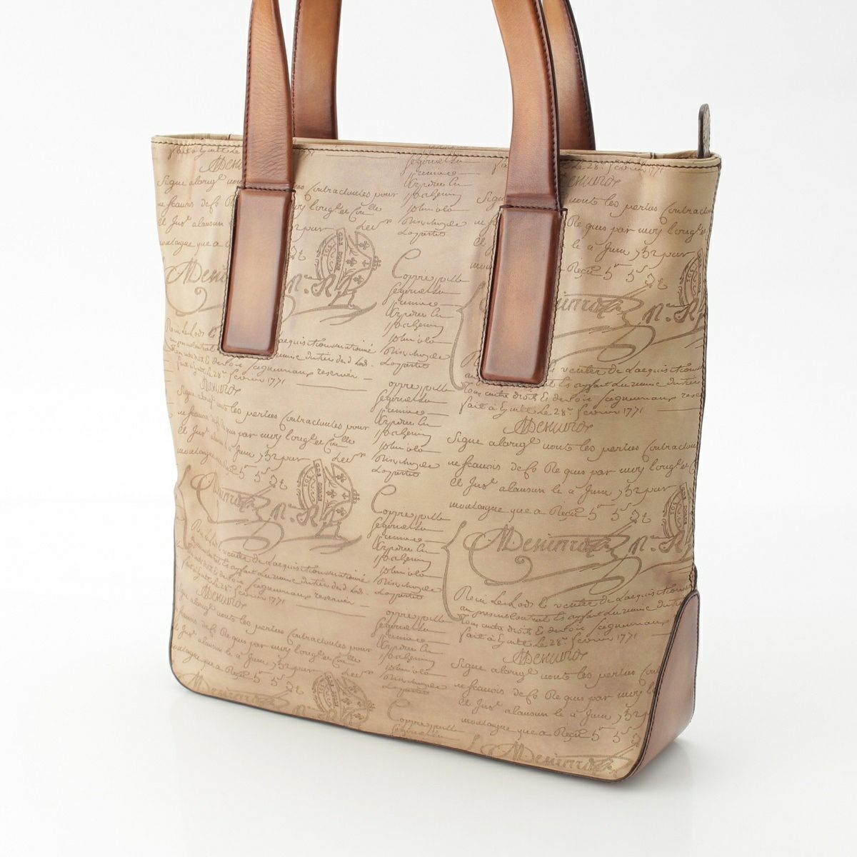 ベルルッティ MODELISTE VERTICAL レザー カリグラフィ トートバッグ ベージュ