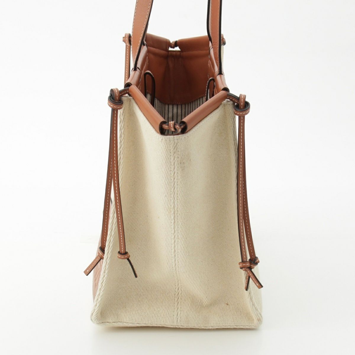 ロエベ クッショントート ラージ キャンバス アナグラム ロングショルダー トートバッグ ハンドバッグ 330.02AB90 ベージュ ブラウン
