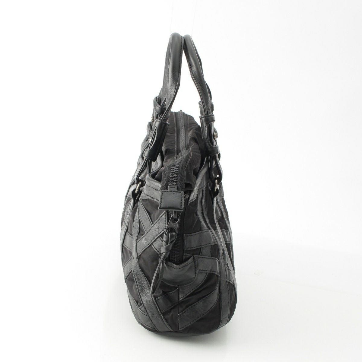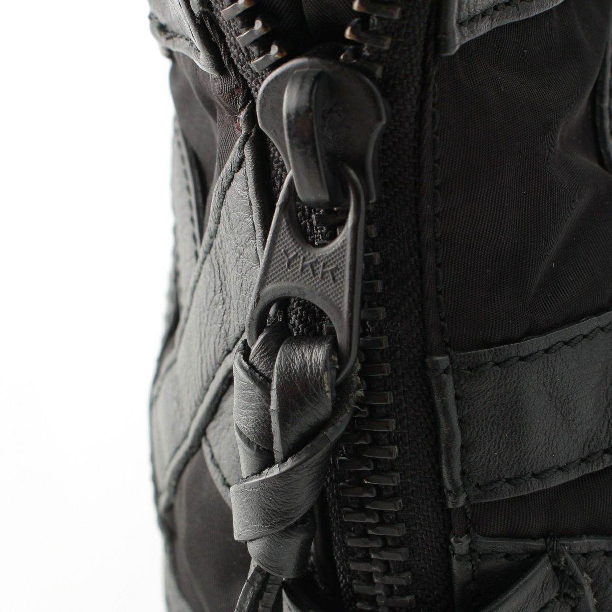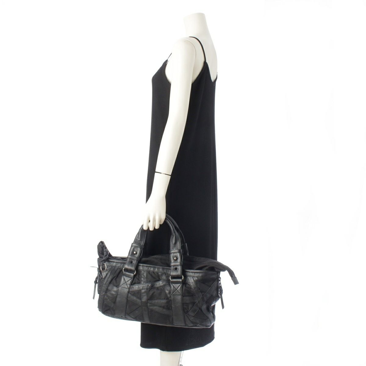 イッセイミヤケ 2018SS レザー ナイロン 切替 パラシュート バッグ ボンテージバッグ IM81AG010 ブラック