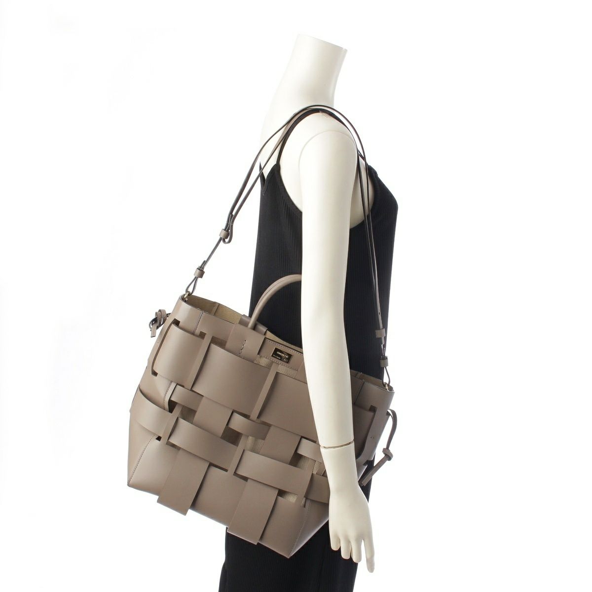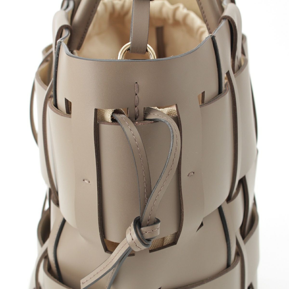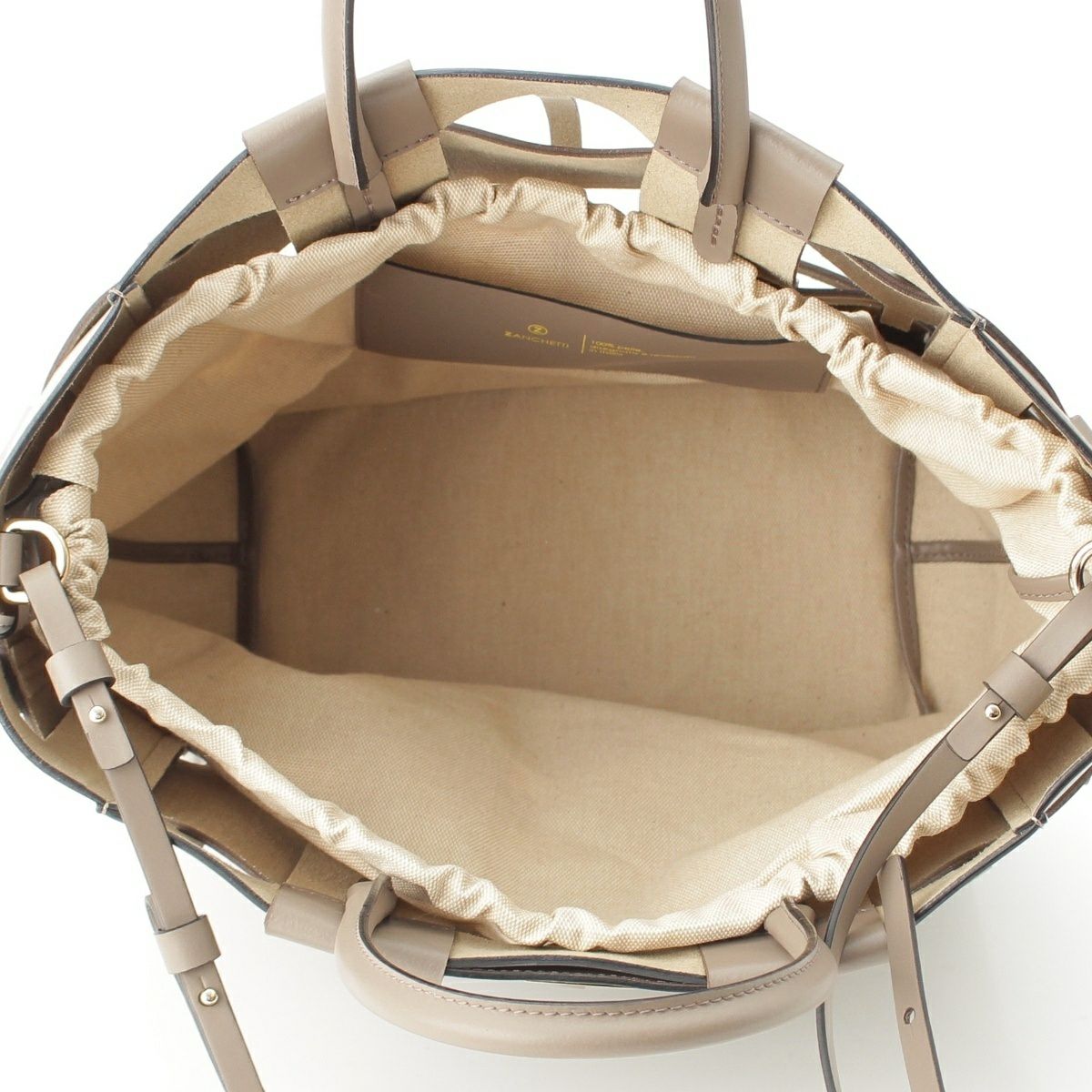 ZANCHETTI ザンケッティ ウーブン WOVEN SHOPPER TOTE レザー 牛革 レーヨン コットン バケット ゴールド金具 巾着 トートバッグ ハンド グレー
