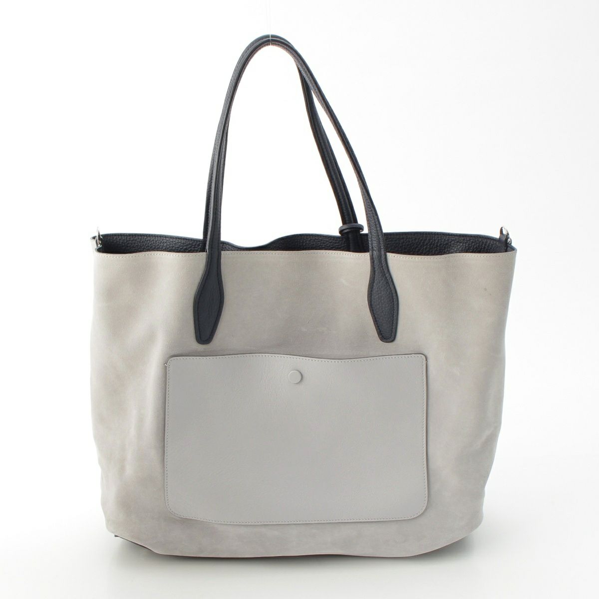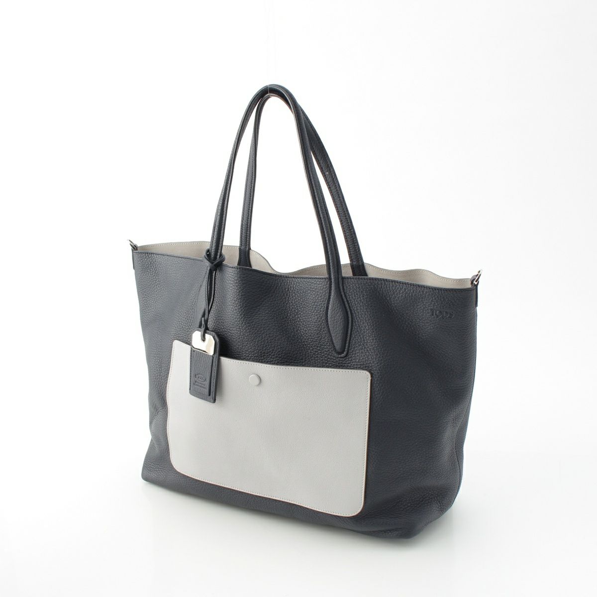 トッズ ジョイ レザー リバーシブル 2WAY ショルダー トートバッグ ネイビー×グレー
