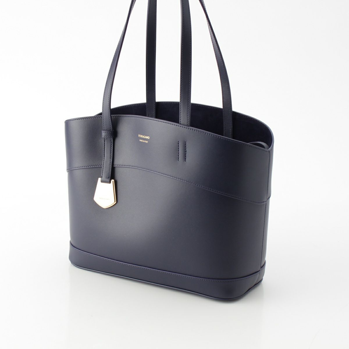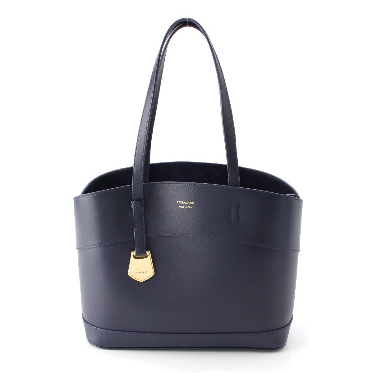 サルヴァトーレフェラガモ レザー チャーミング ポーチ付き トートバッグ 216797 ミッドナイト ネイビー