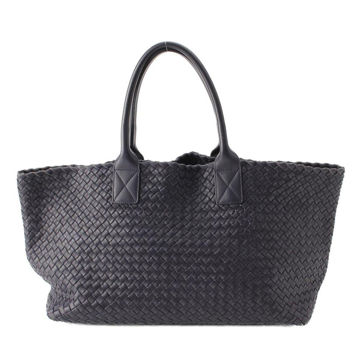 ボッテガヴェネタ Bottega Veneta イントレチャート カバMM レザー ポーチ付き トートバッグ ネイビー