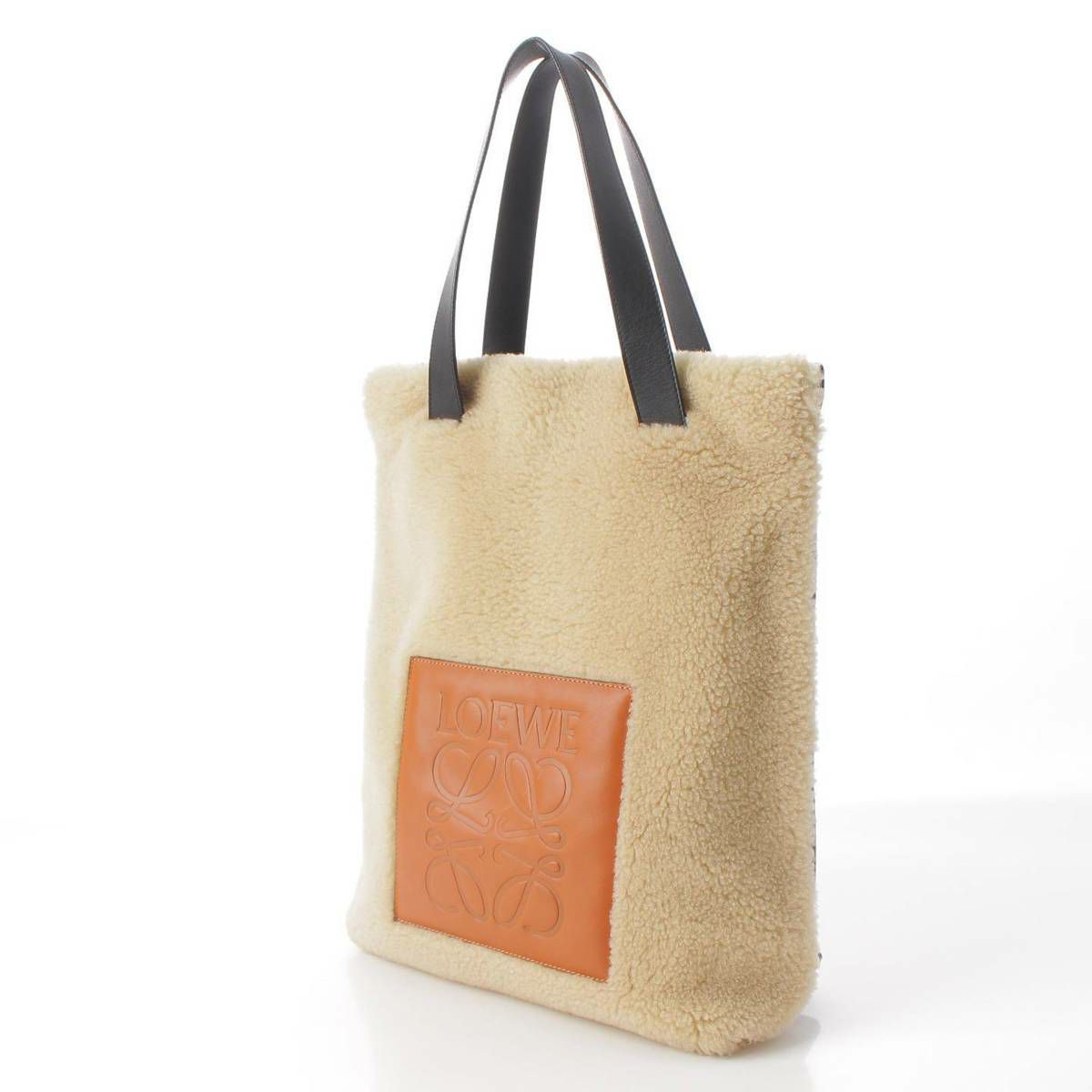ロエベ Loewe アナグラム ロゴ ムートン トートバッグ ハンドバッグ バッグ ベージュ ブラック