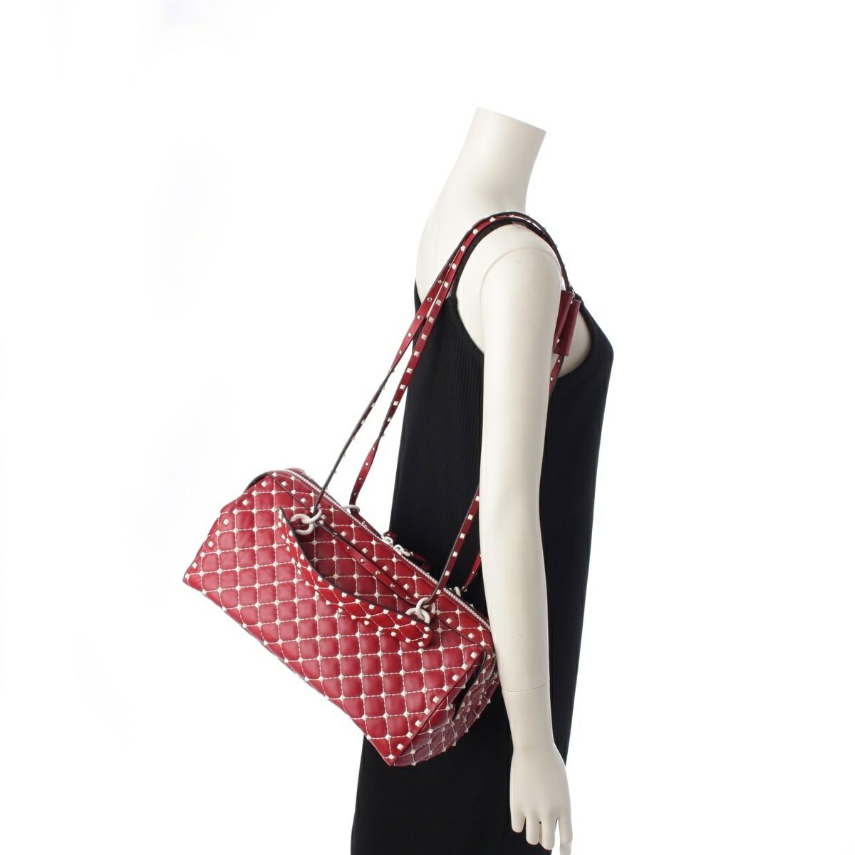 ヴァレンティノ・ガラヴァーニ レザー スタッズ 2WAY クラッチ ボストンバッグ PW2B0B33RVH レッド