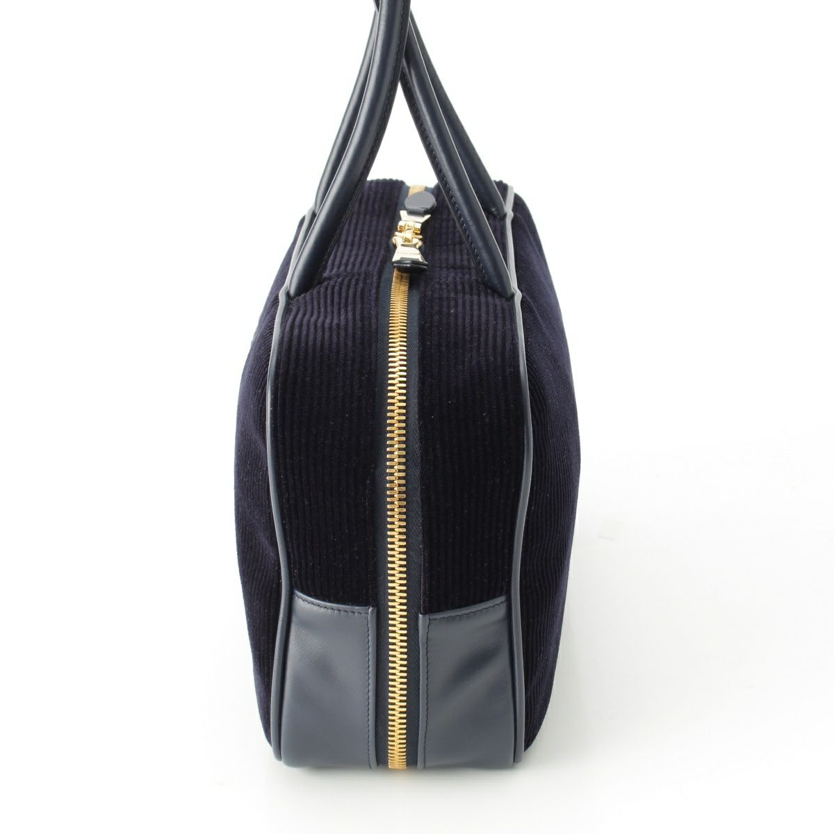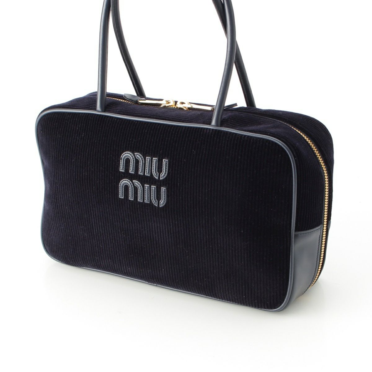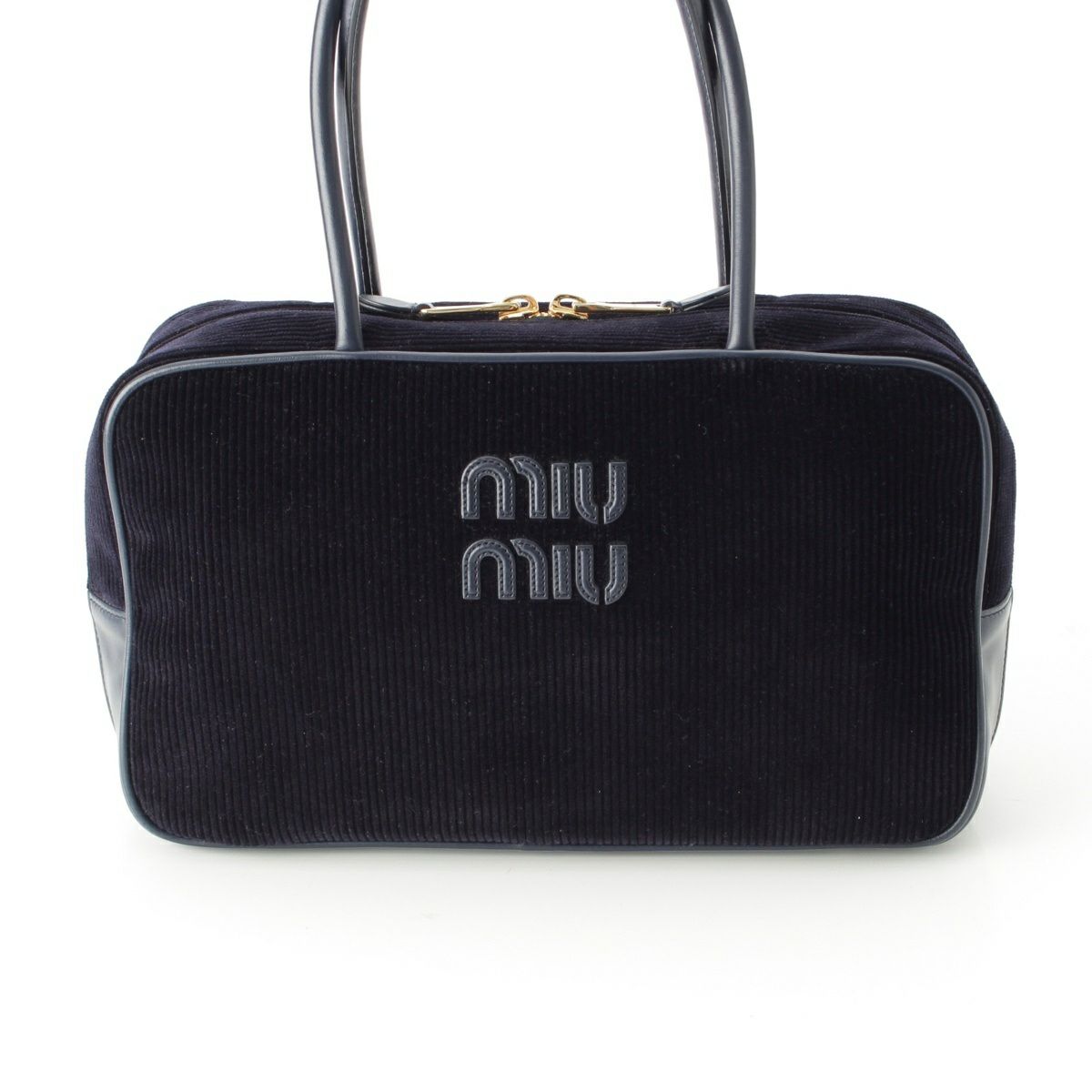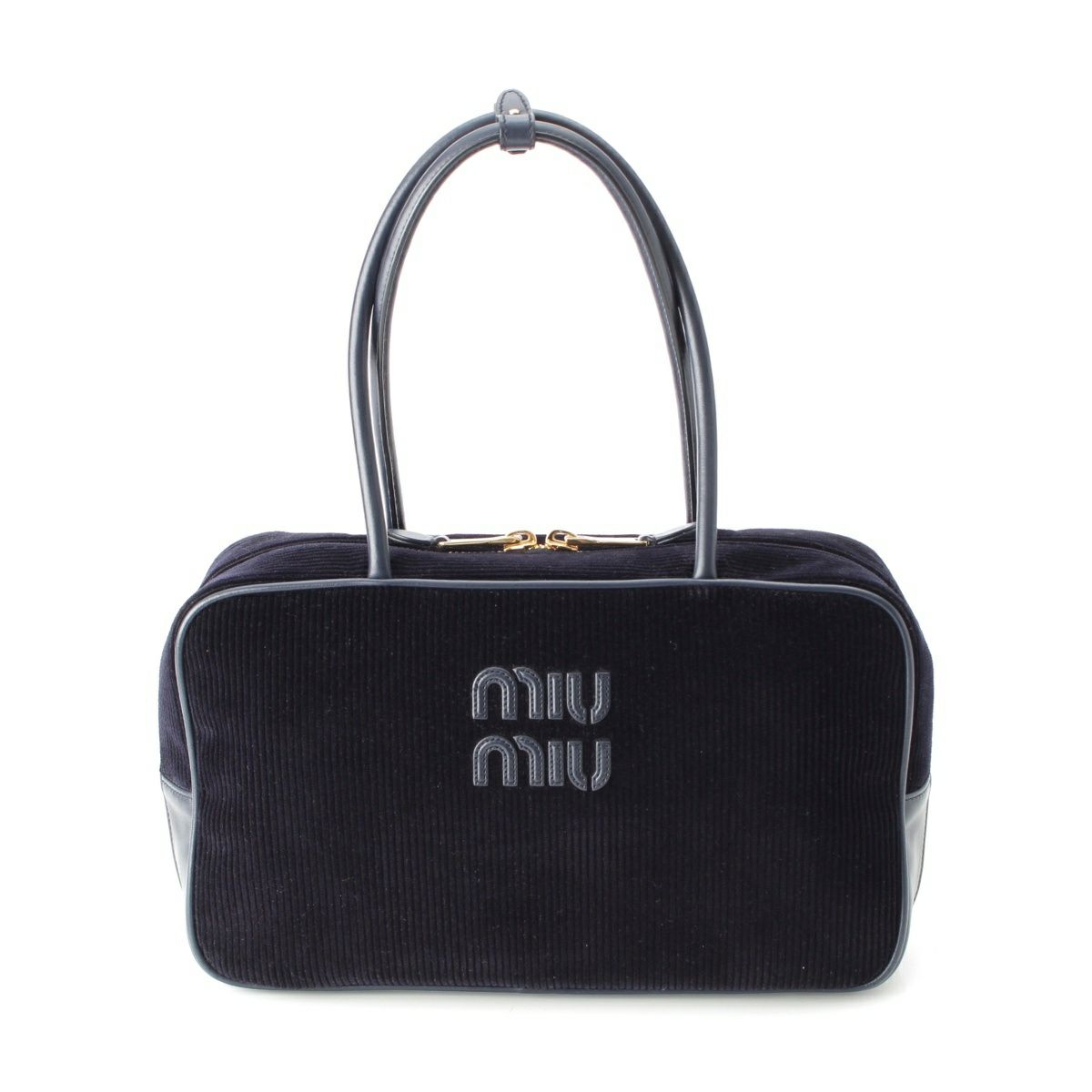 ミュウミュウ ボー コーデュロイ ロゴ トップハンドル ボストンバッグ 5BB163 ネイビー