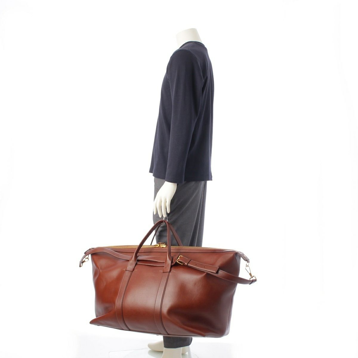 トムフォード 20-21年 カーフレザー Buckley 2WAY ビッグ ショルダー ボストンバッグ ブラウン