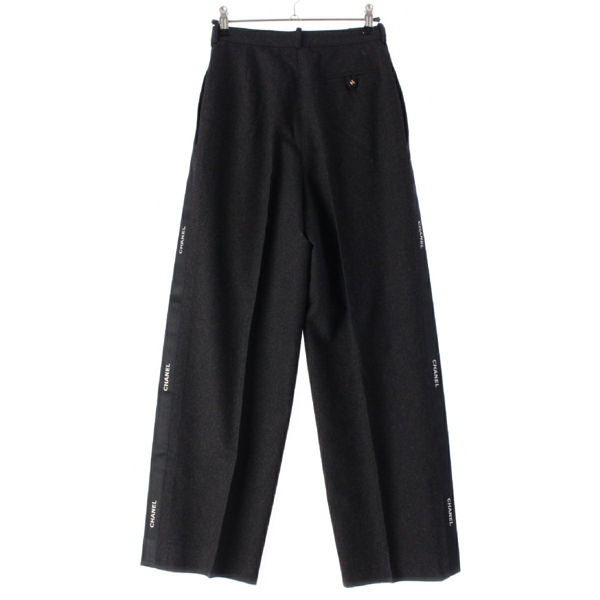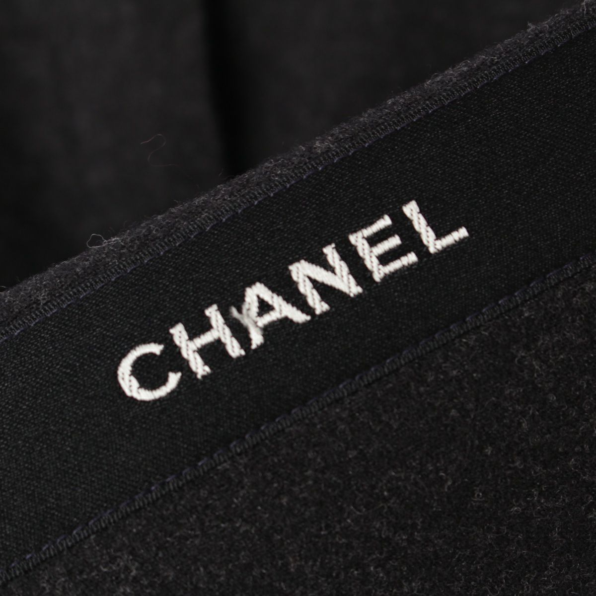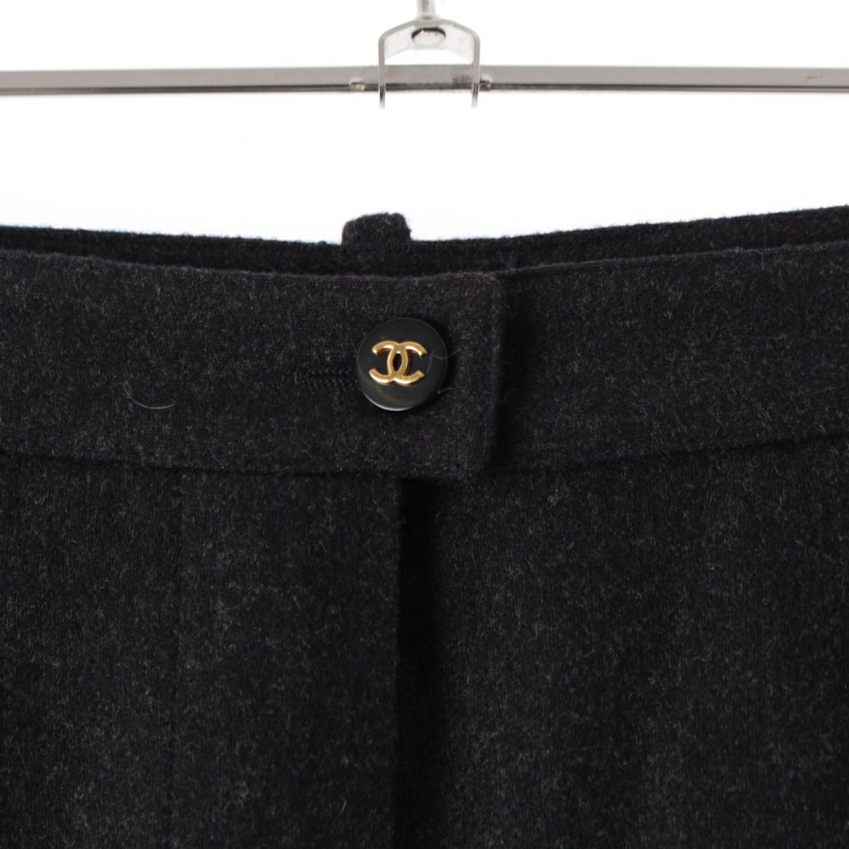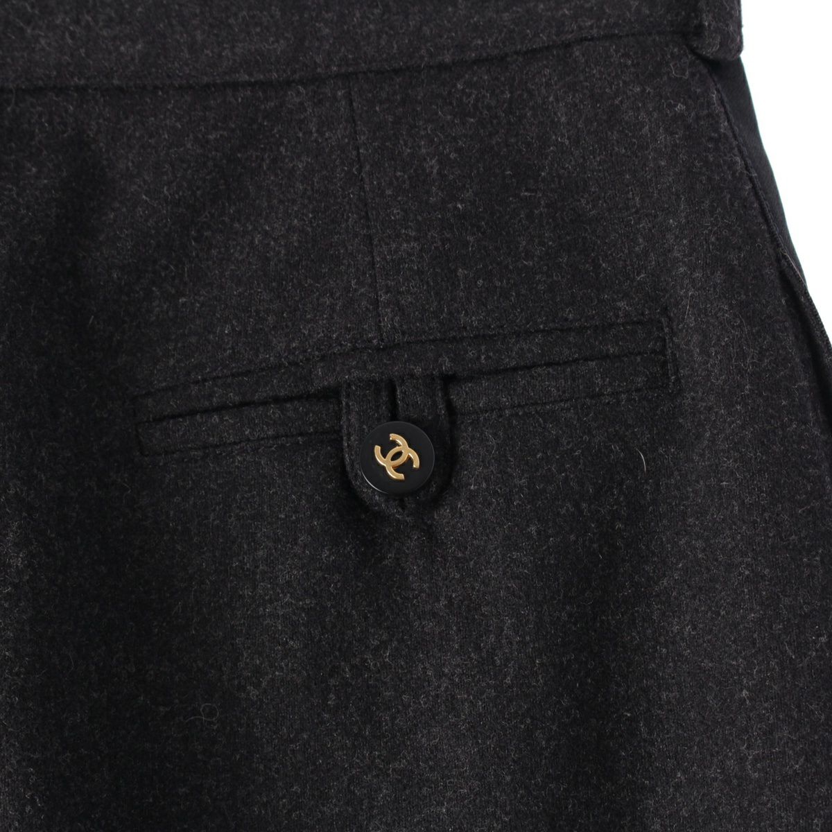 シャネル ウール サイド ライン ロゴ ココマークボタン 紙タグ パンツ スラックス トラウザーズ P05760 グレー 36