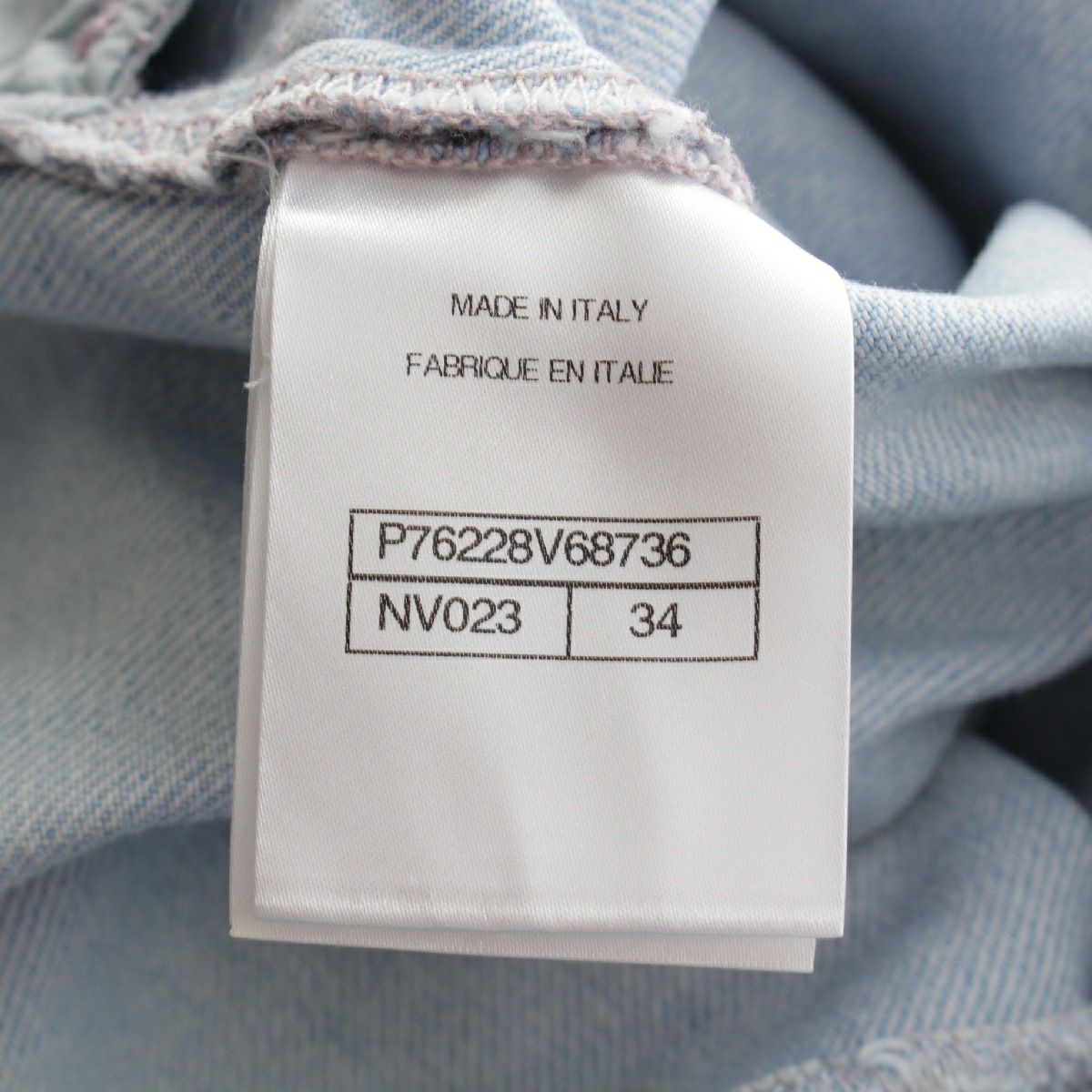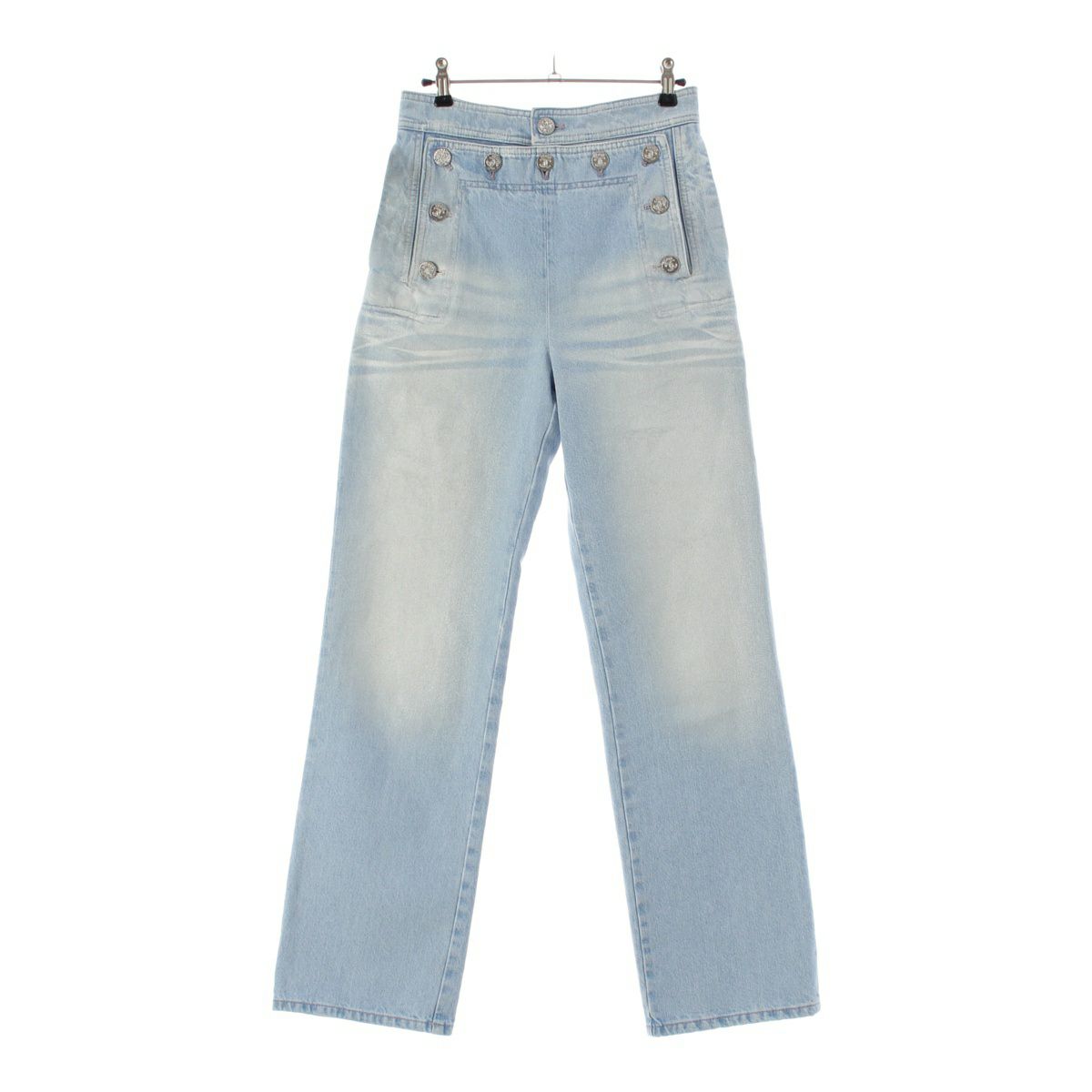 シャネル 24AW ウォッシュドデニム ココマークボタン イリディッセント コーティング マリン パンツ ボトムス P76228 アイスブルー 34