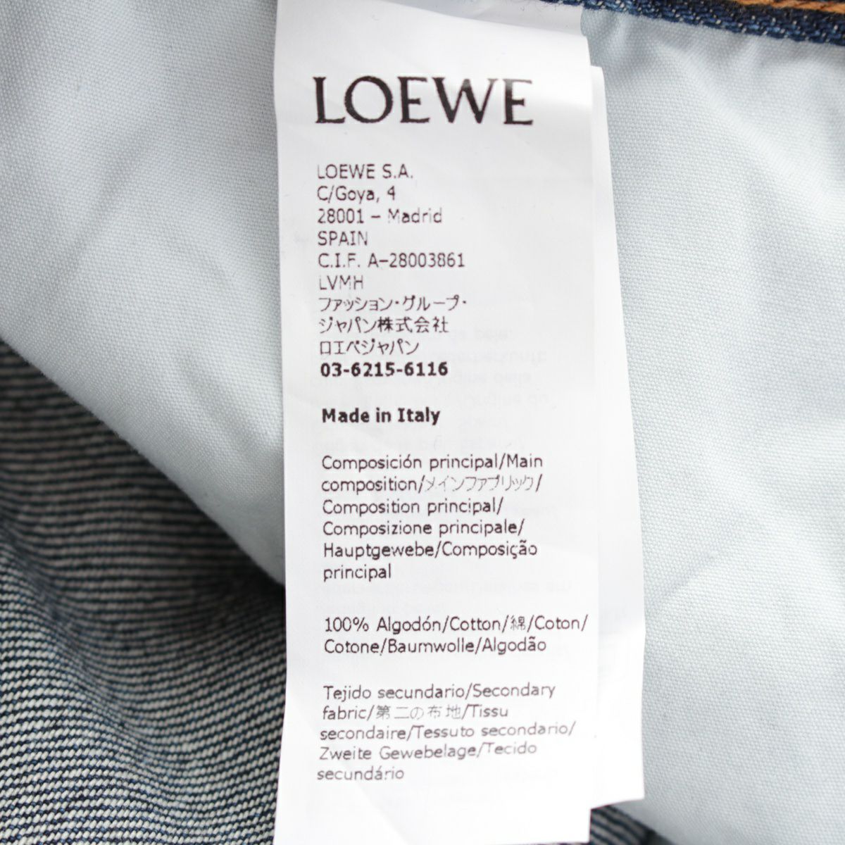 ロエベ フィッシャーマン コットンデニム ロゴパッチ デニムパンツ ターンアップジーンズ ボトムス H526Y11W09 インディゴ 46