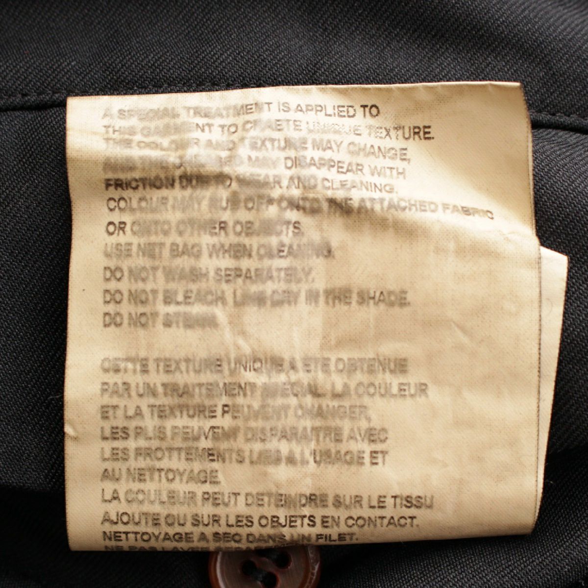 ダメージ箇所 変色、糸つれ、組成表示タグに劣化あり