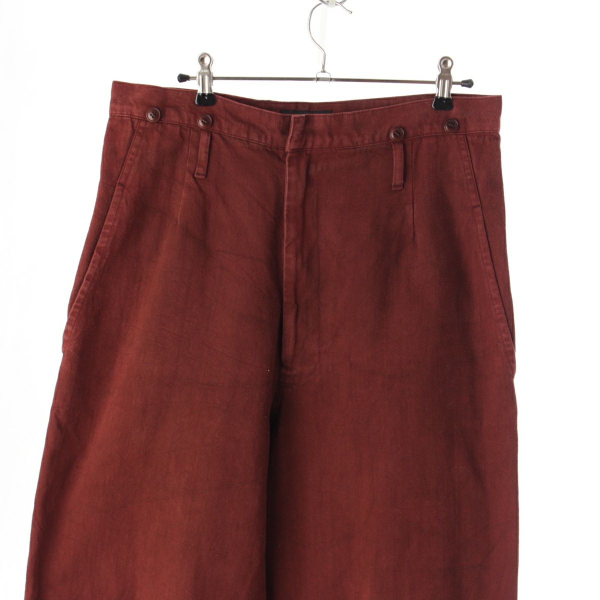 ワイズ コットン 製品染め サスペンダー付き ワイド パンツ ボトムス バーガンディ 2