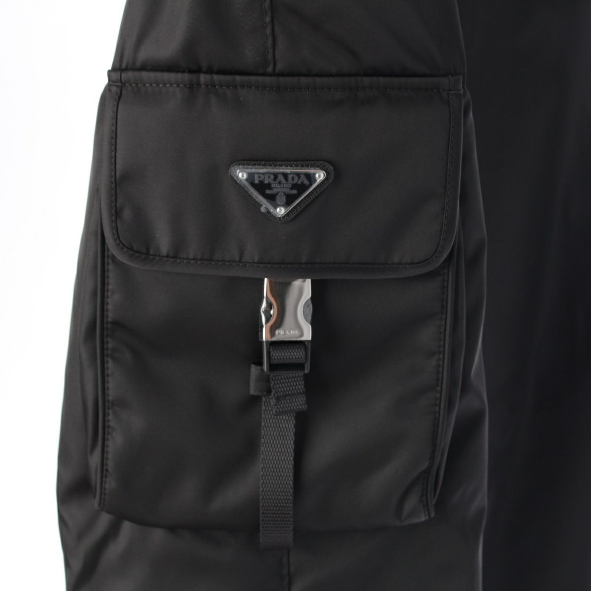 プラダ Re-Nylon リナイロン トライングルロゴ 三角プレート サイドポケット カーゴパンツ ボトムス PH130 ブラック 50