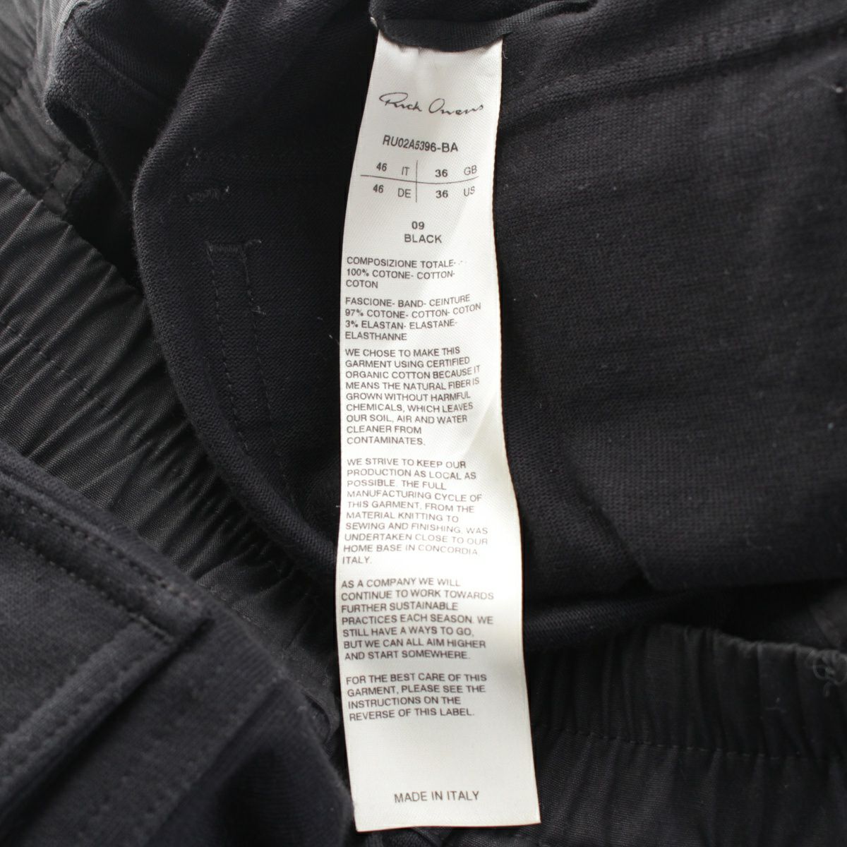 リックオウエンス 21AW コットン MASTODON CARGO PANTS カーゴパンツ サルエルパンツ スウェット RU02A5396 ブラック 46