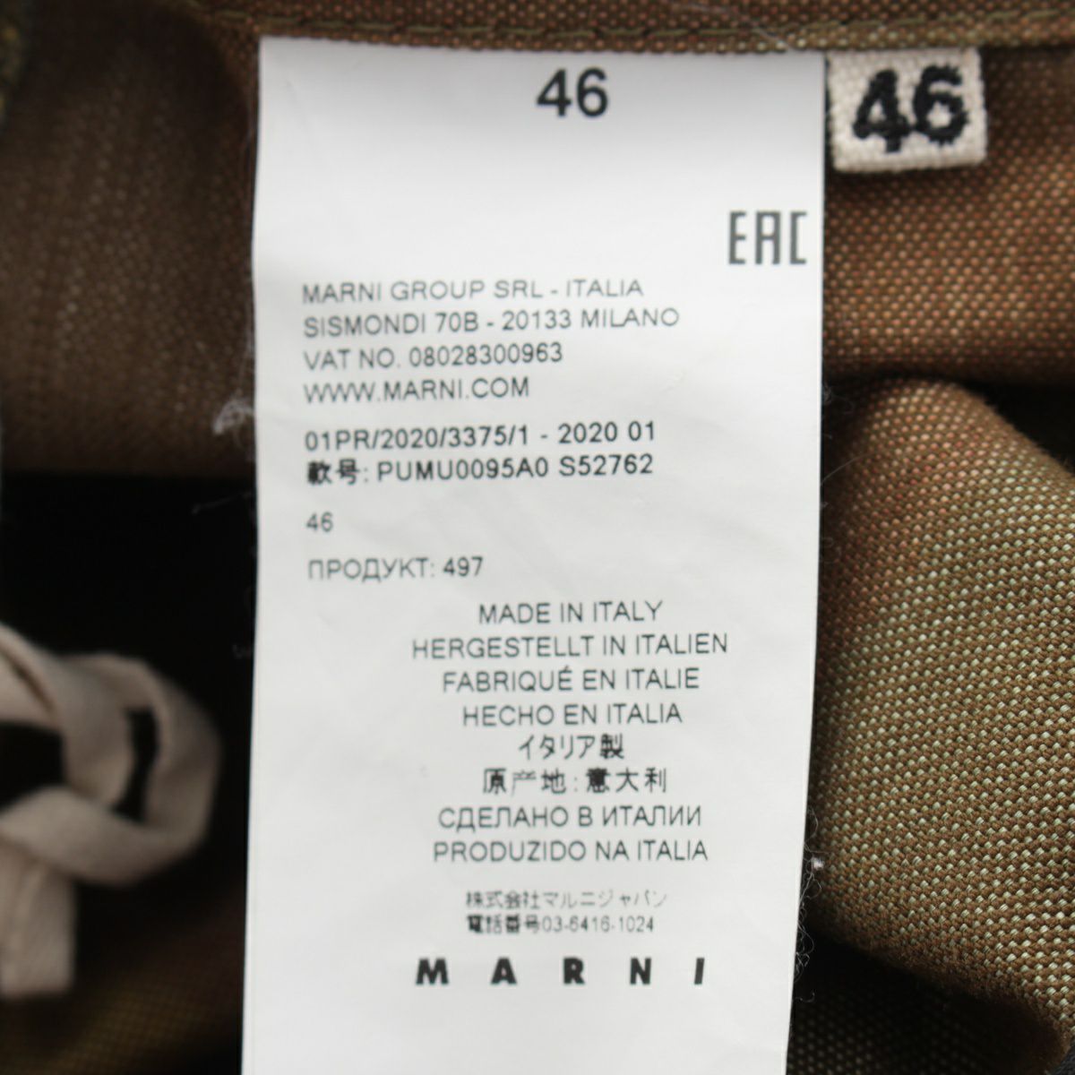 マルニ 20SS コットン カモフラージュ柄 オーバーサイズ カーゴパンツ ワイドパンツ グリーン系 マルチカラー 46