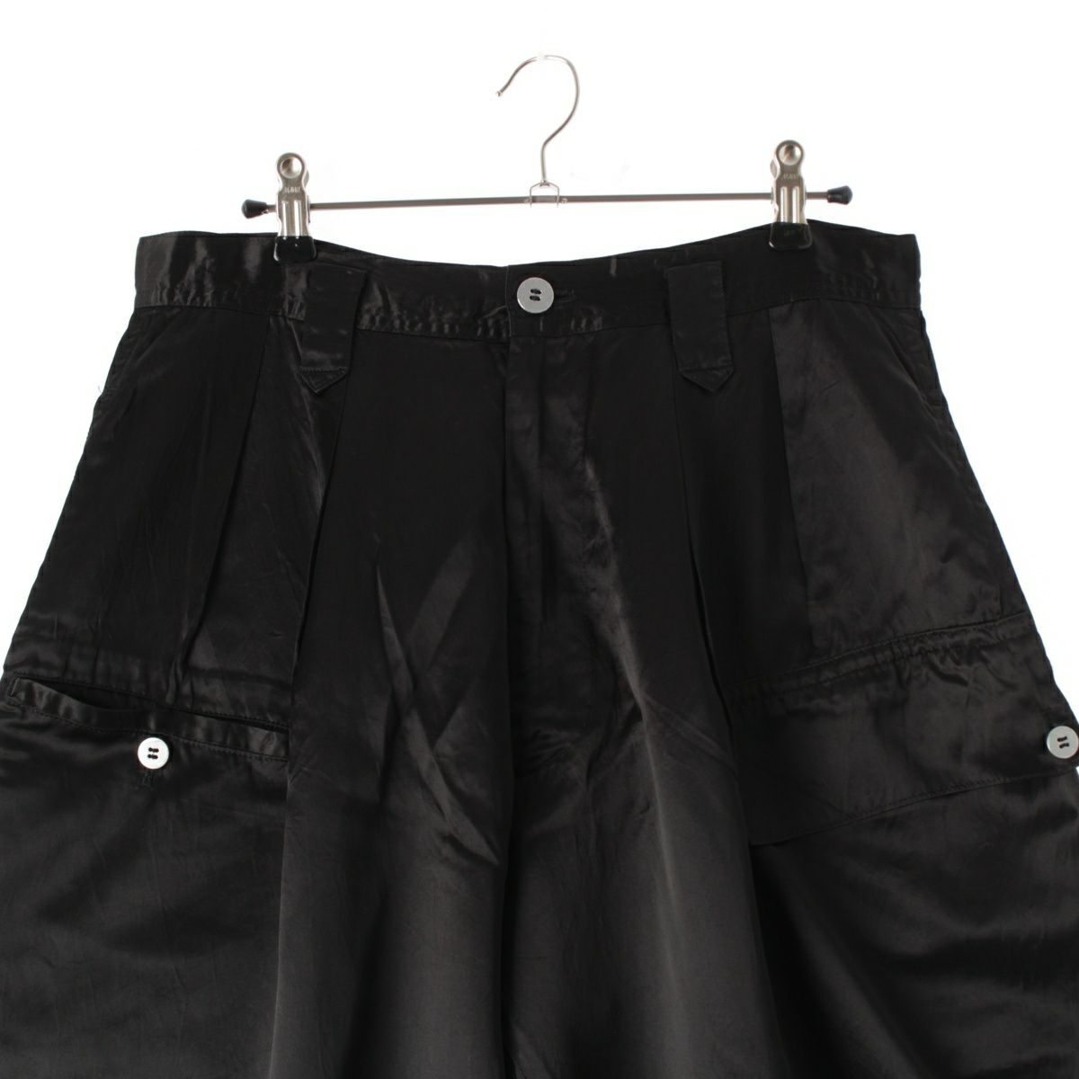 ワイズ 80S ヴィンテージ アセテート 2タック デザイン ワイド パンツ シルバーカラーボタン ブラック