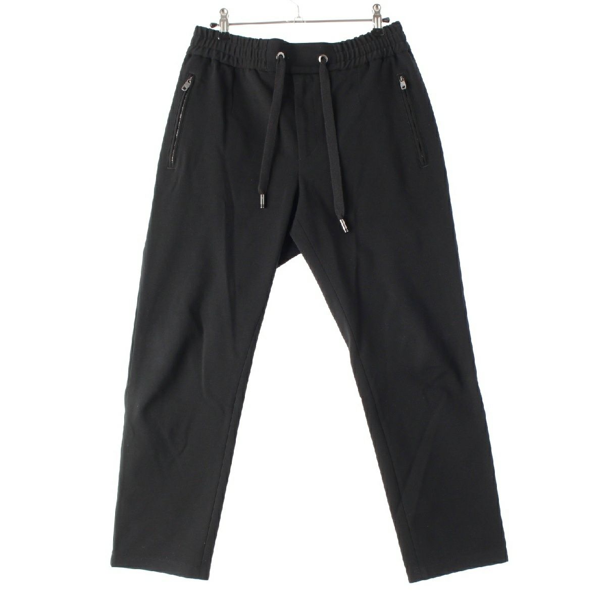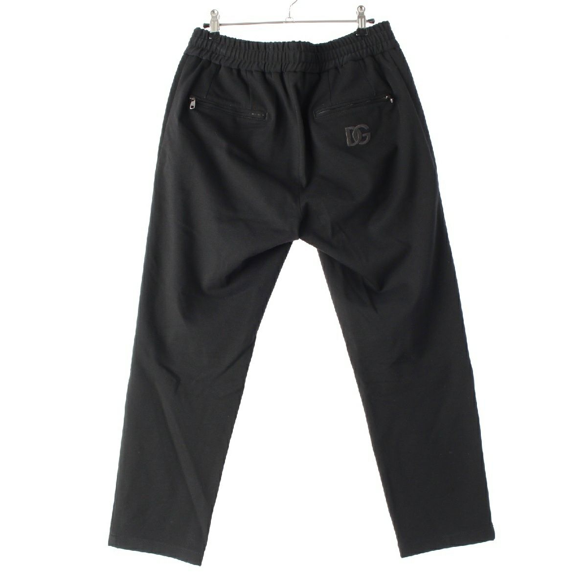 ドルチェアンドガッバーナ レーヨン ロゴプレート ジップ スウェット パンツ 刺繍 ブラック 44