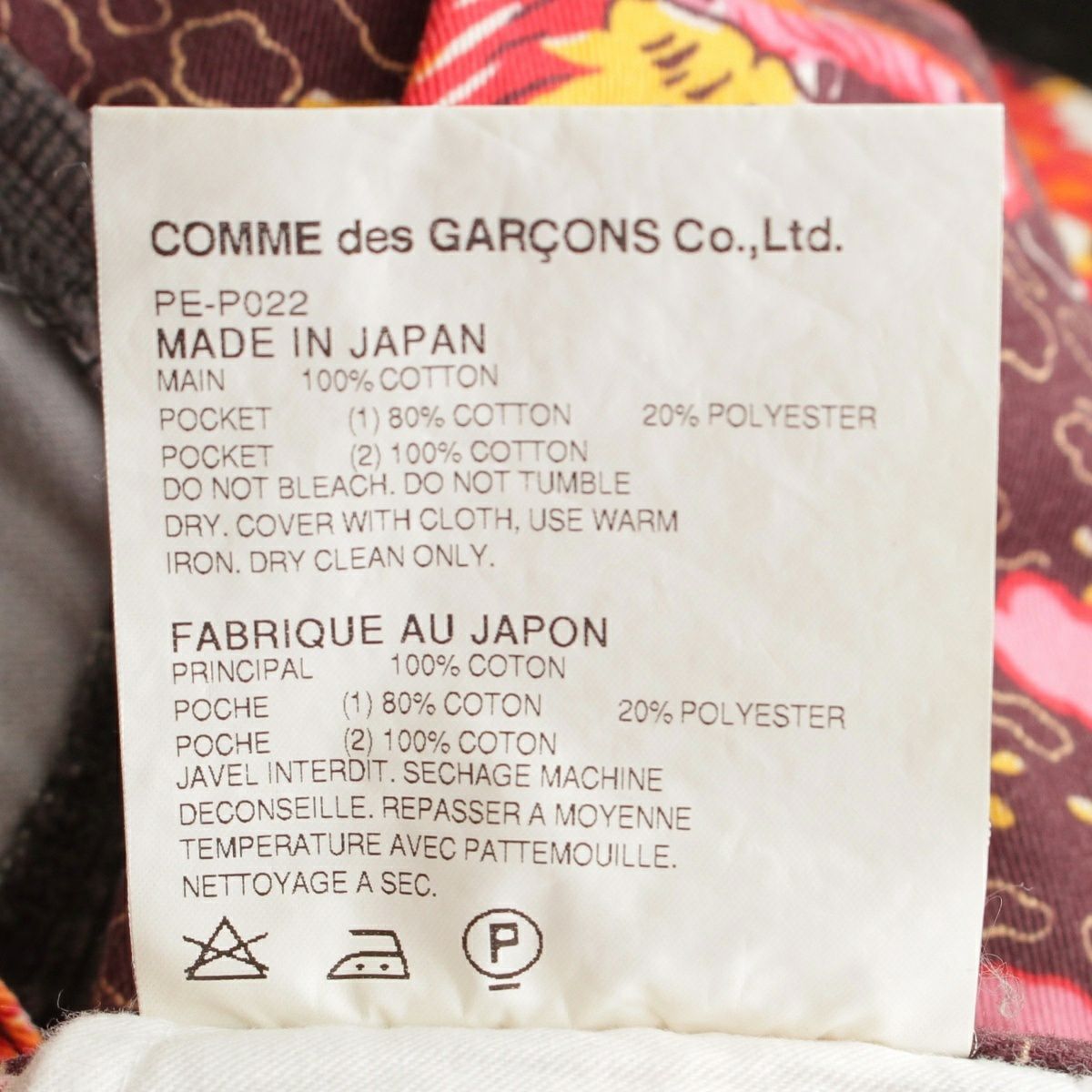 コムデギャルソンオムプリュス AD2009 2010SS コットン 龍柄 コーデュロイ ポケット 切替 サルエル パンツ ボトムス PE-P022 マルチカラー XS