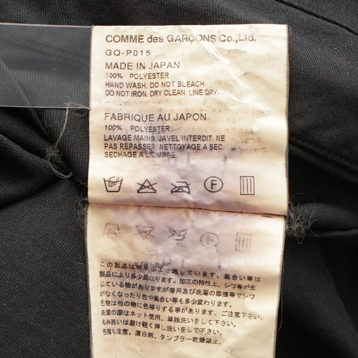コムデギャルソン AD2015 16SS ポリエステル縮絨 製品染め 切替 バルーン パンツ ボトムス GQ-P015 ブラック XS