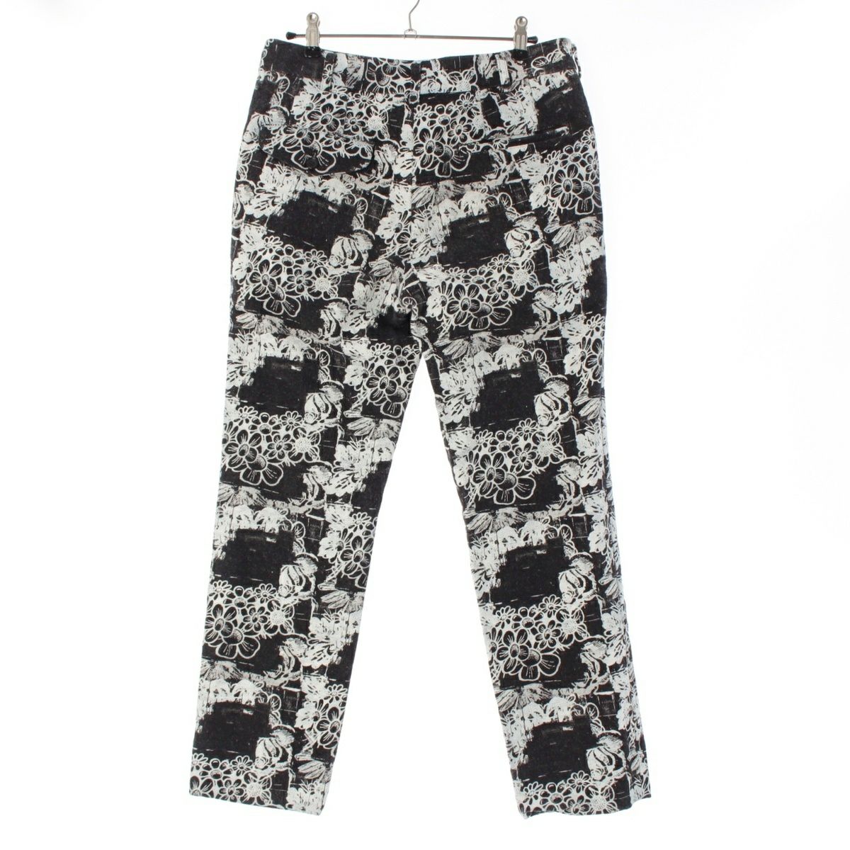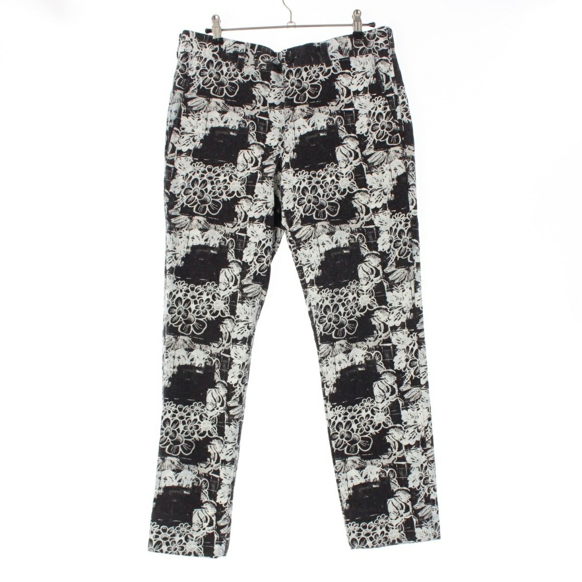 コムデギャルソンオムプリュス AD2021 コットン 花柄 フラワープリント テーパード パンツ ボトムス PI-P042 ブラック×ホワイト系 XS