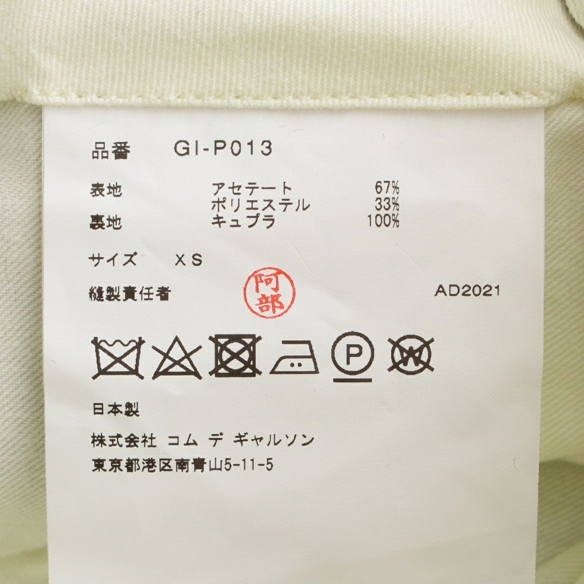 コムデギャルソン AD2021 アセテート 2タック ハーフ ショートパンツ ボトムス GI-P013 ブラック XS