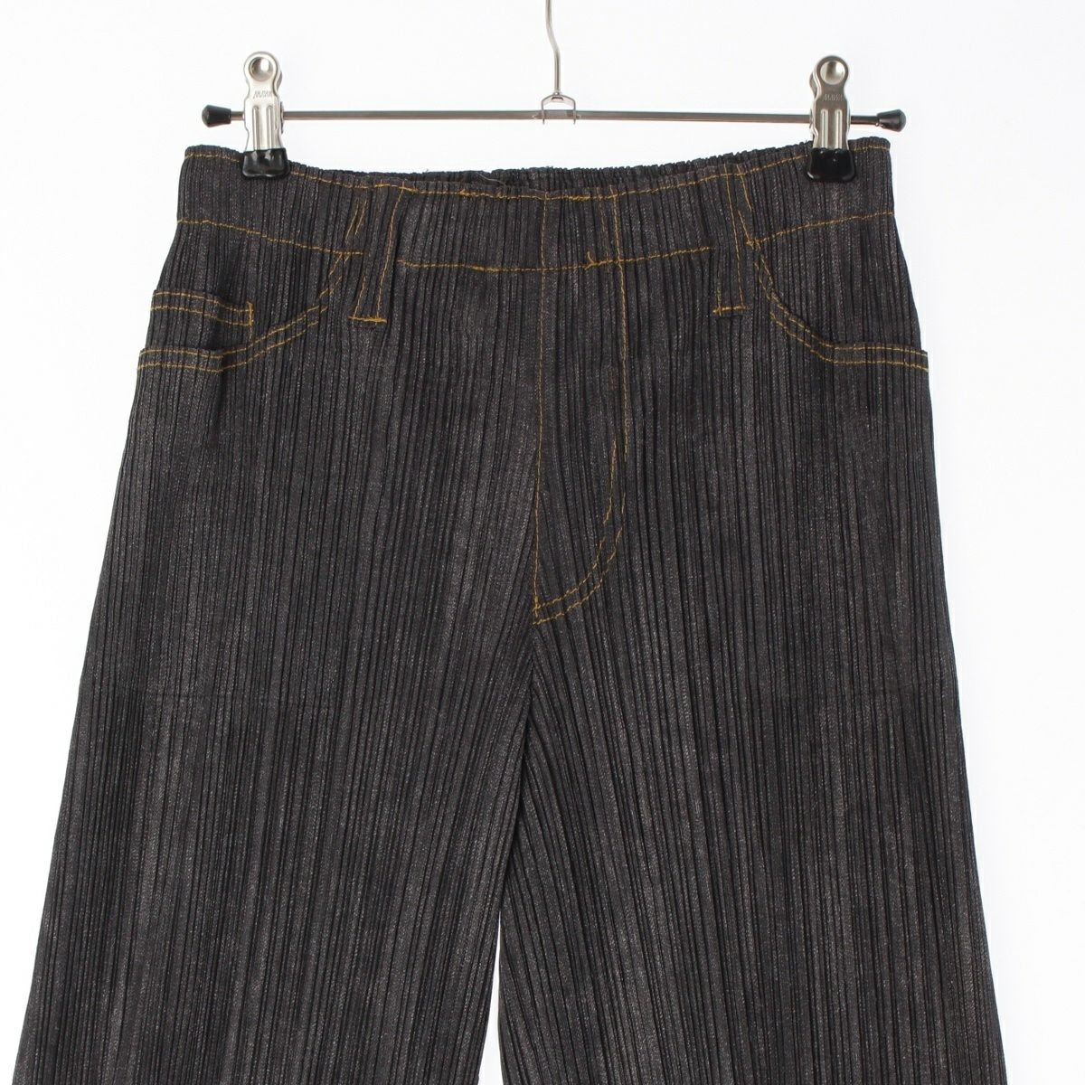 プリーツプリーズ イッセイミヤケ デニム転写 イージー パンツ スラックス ボトムス PP75-JF022 ダークグレー 1