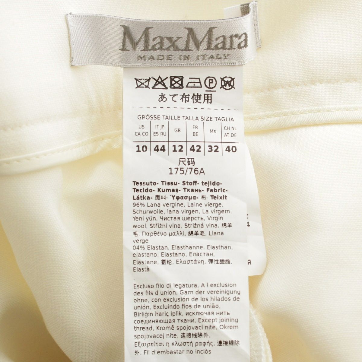 マックスマーラ 25年 NEPETA ウール センター プレス スラックス パンツ 2511311916 ホワイト 44