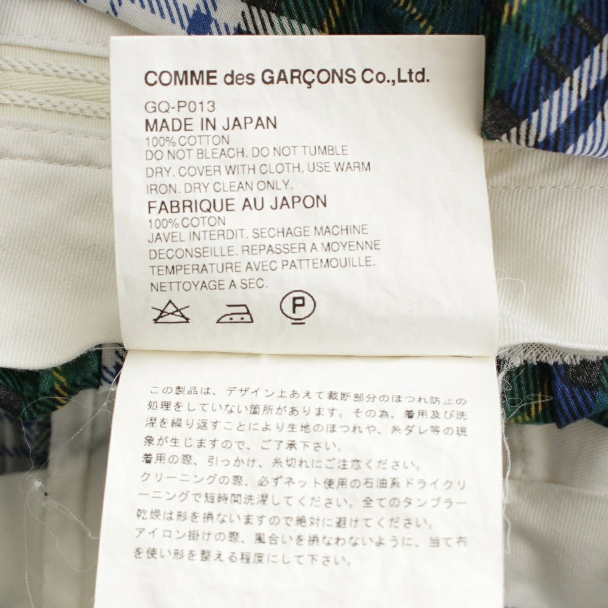 コムデギャルソン AD2005 06SS コットン チェック ワイド サルエルパンツ ボトムス GQ-P013 ホワイト グリーン ブルー マルチカラー SS