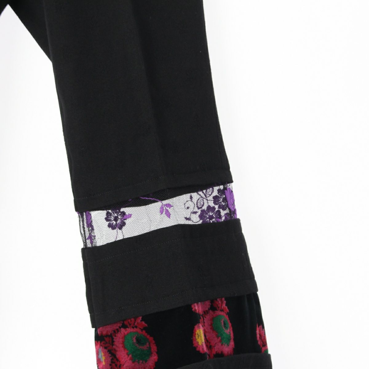 コムデギャルソン AD2001 ウール レース切替 花柄刺繍 デザイン フレアスラックス パンツ ブラック S