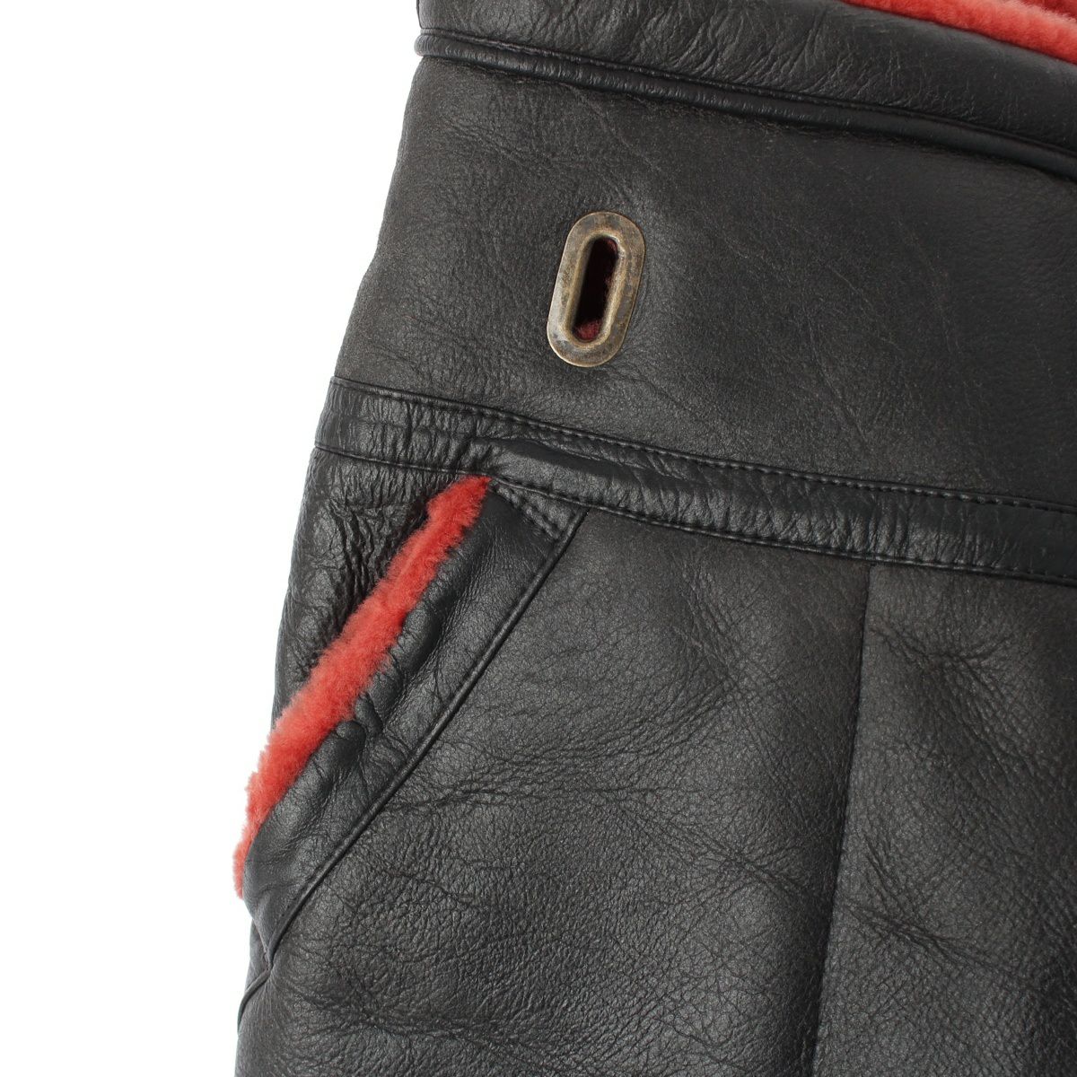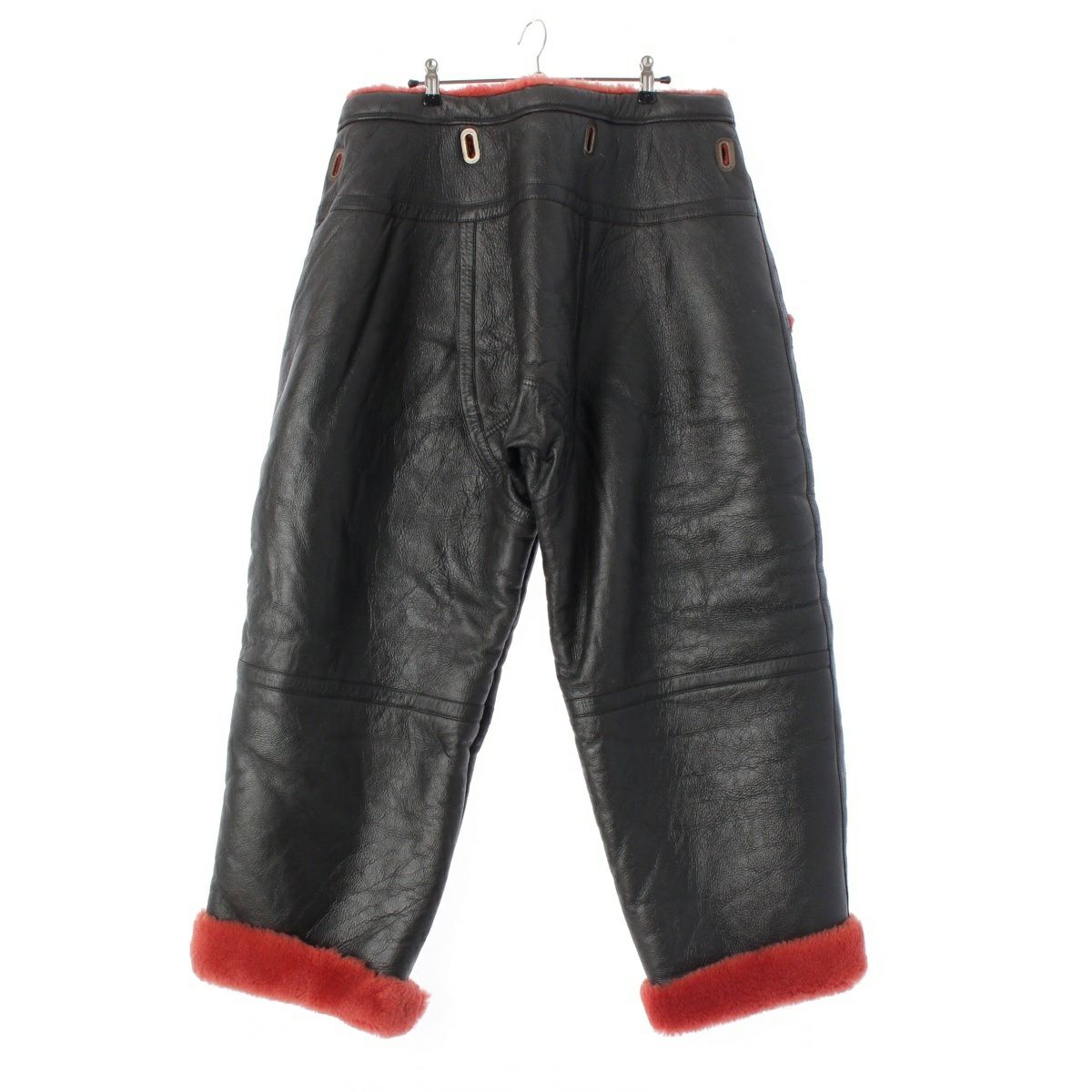 イッセイミヤケ 80s 1984 レザー ムートン 筆タグ パンツ ボトムス ブラック レッド