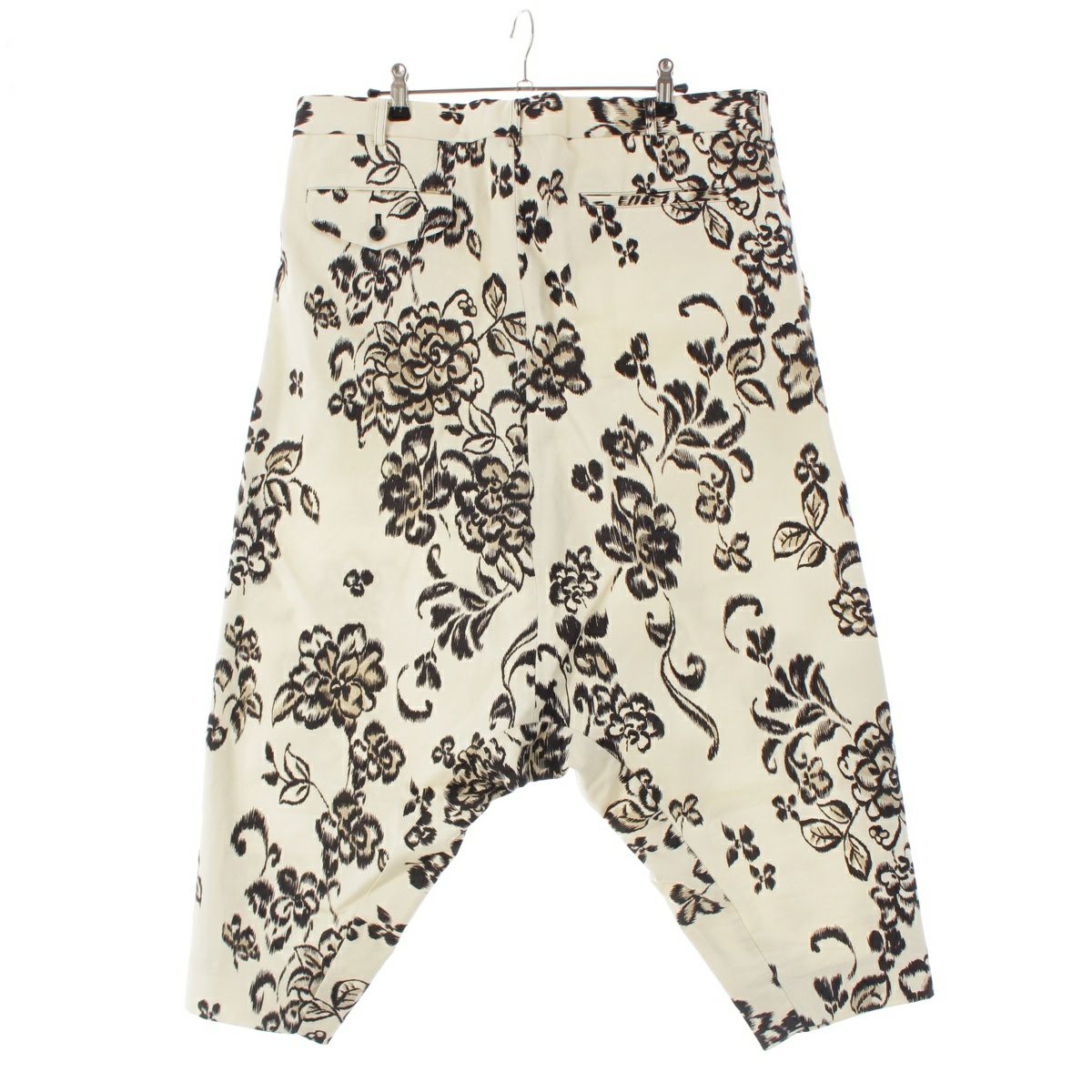 コムデギャルソンオムプリュス AD2021 FLORAL PRINT CROPPED コットン パンツ サルエル ボトムス PI-P029 ホワイト ブラック S