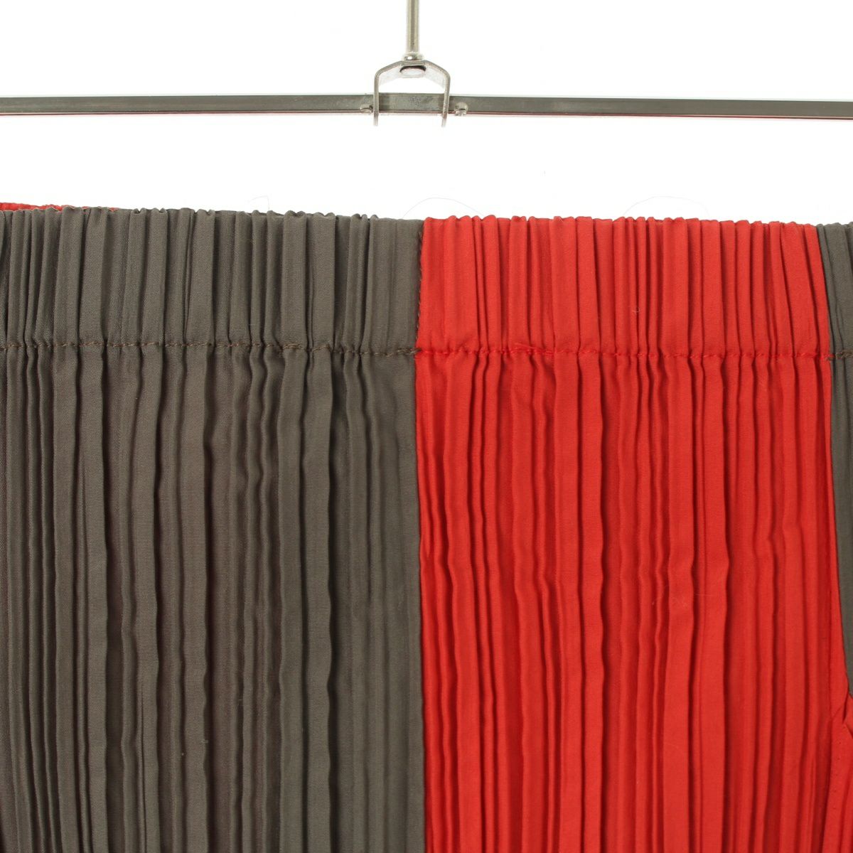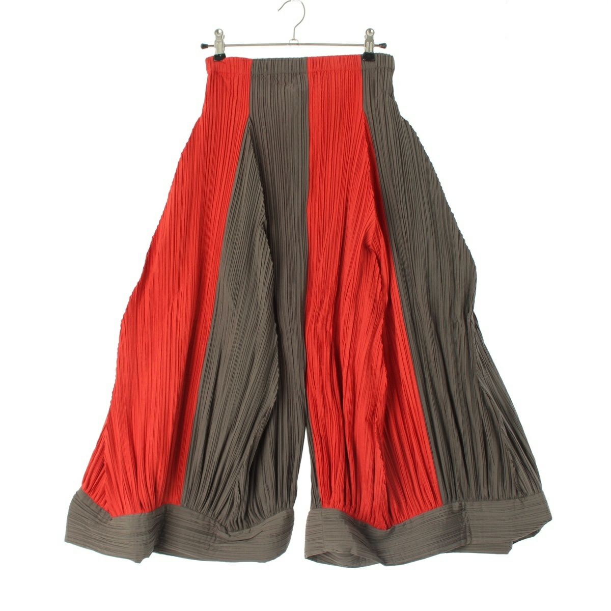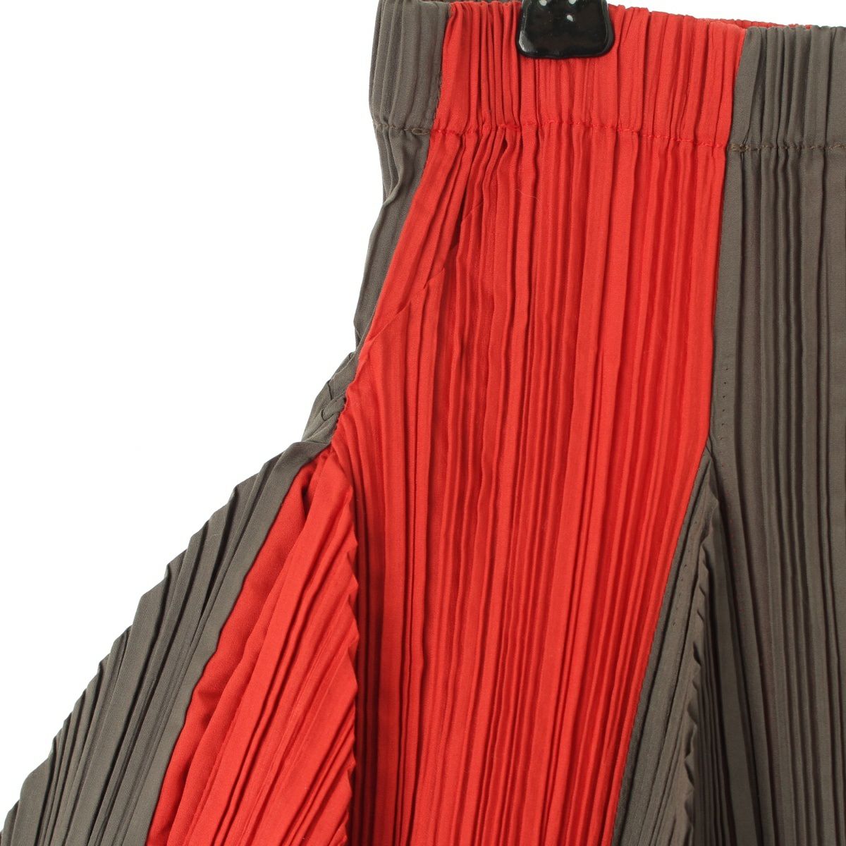 イッセイミヤケ 90s 90年 プリーツ 太ストライプ CURVED PANTS カーブ パンツ カーキ オレンジ M