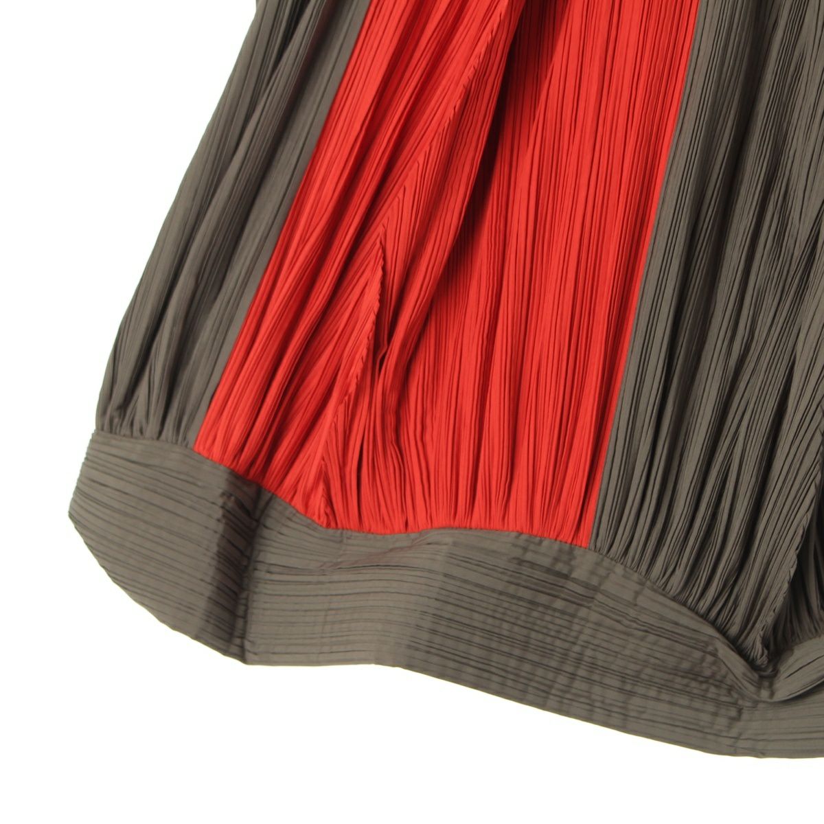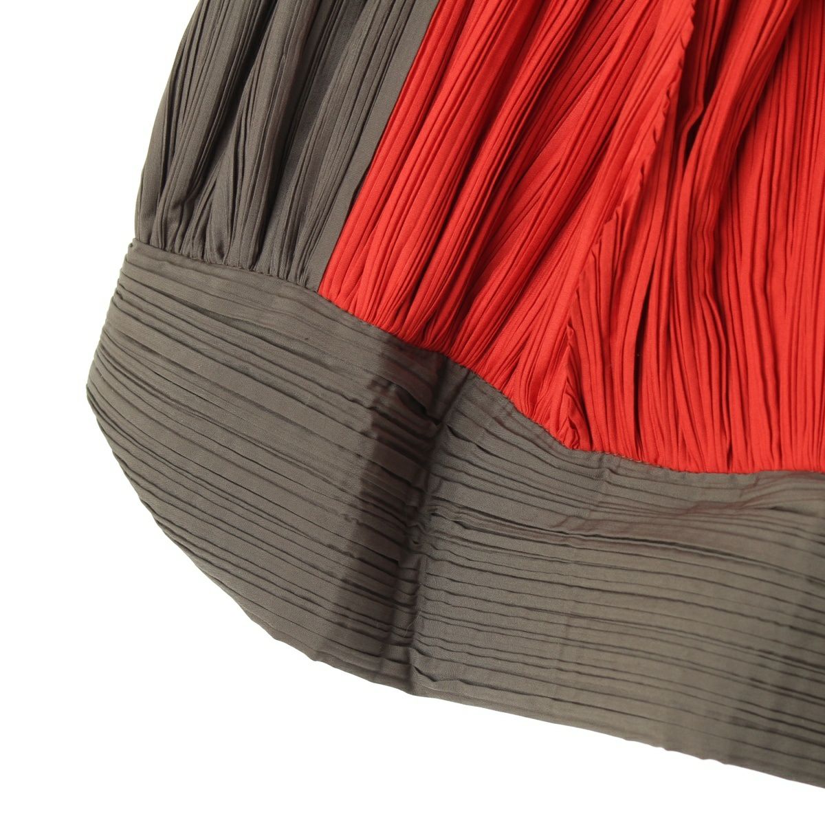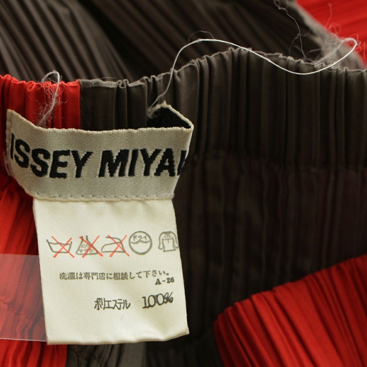 イッセイミヤケ 90s 90年 プリーツ 太ストライプ CURVED PANTS カーブ パンツ カーキ オレンジ M