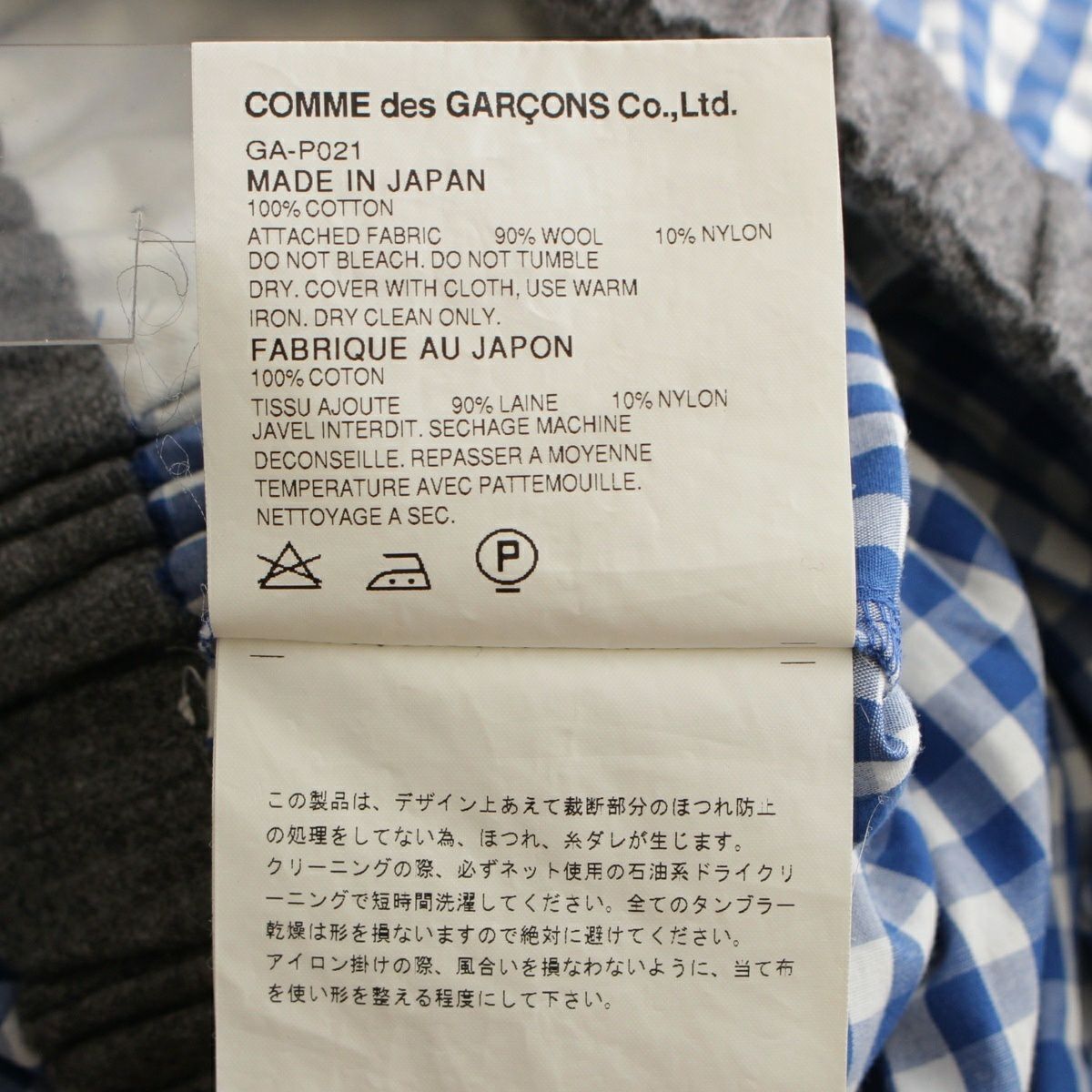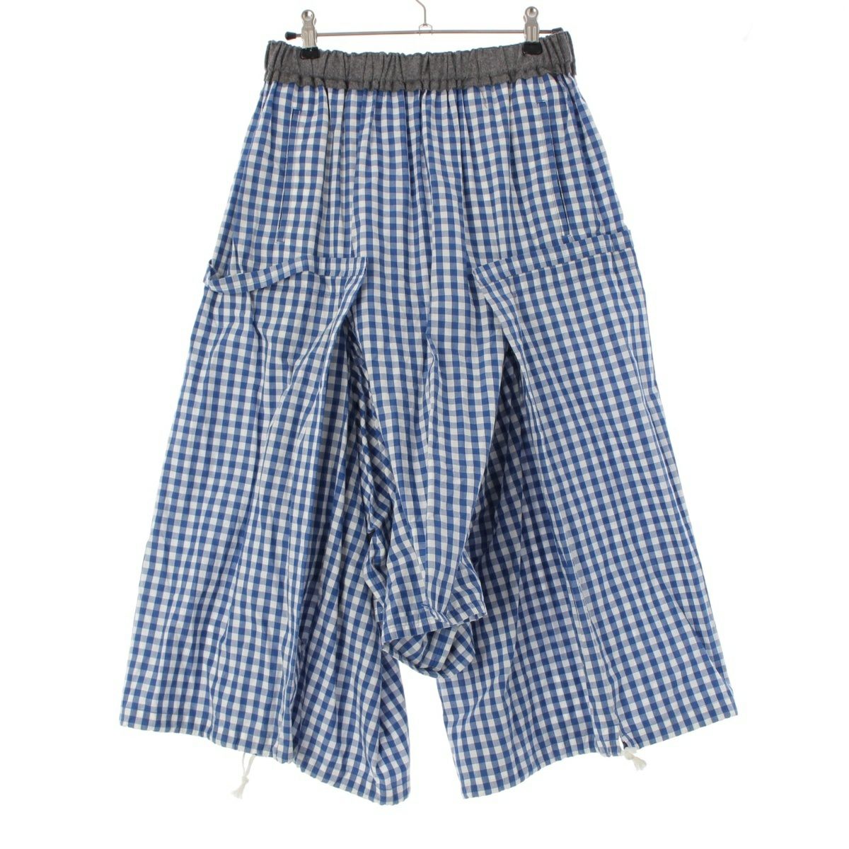 コムデギャルソン 08SS AD2007 ウール コットン ウエスト切替 ギンガムチェック サルエルパンツ ボトムス GA-P021 ブルー SS