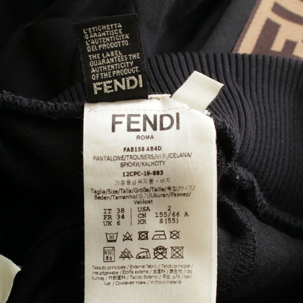 フェンディ 2019 コットン混 FFロゴ ズッカ柄 スウェット パンツ ボトムス FAB156 ブラック 38
