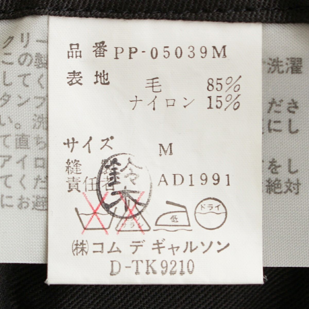 コムデギャルソンオムプリュス AD1991 91AW 6.1 THE MAN ウール ギャバジン ワイド ストレート スラックス パンツ ボトムス PP-05039M ブラック M