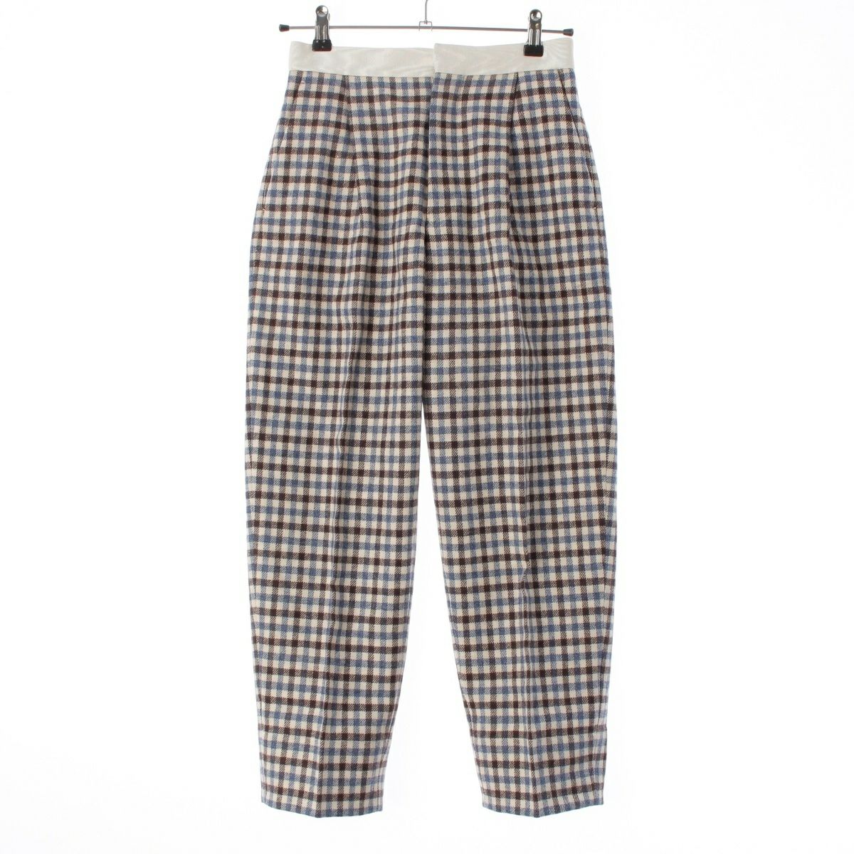 ドゥロワー ウール ギンガムチェック タック パンツ ボトムス 6514-236-1025 ブルー ホワイト 34